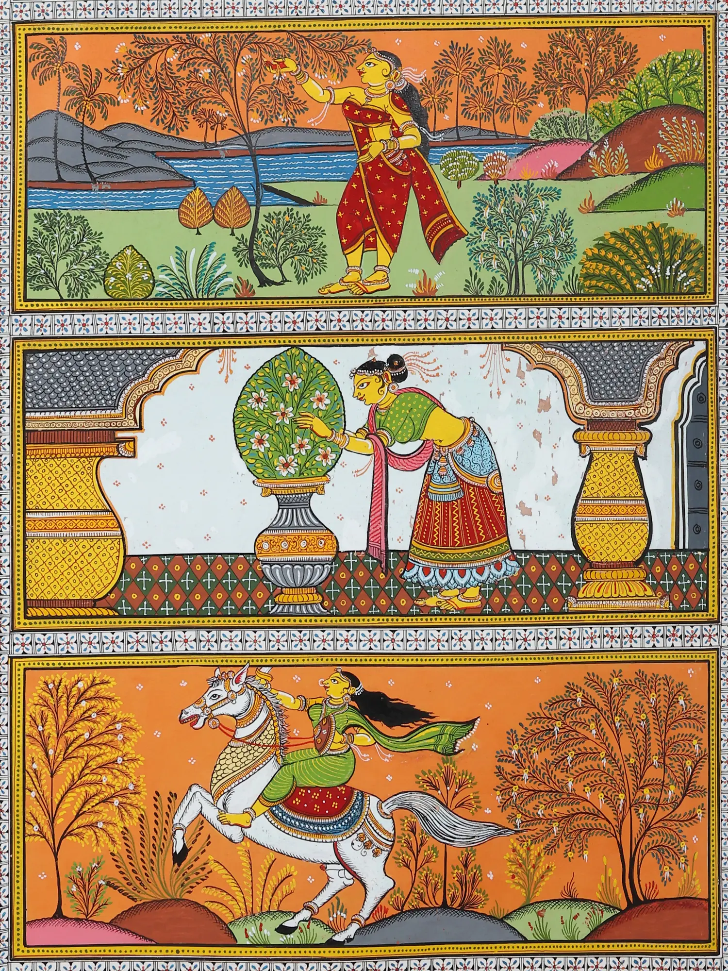 Lord Hanuman Meets Devi Maa Sita in Ashok Vatika | Superfine Pattachitra Painting from Odisha