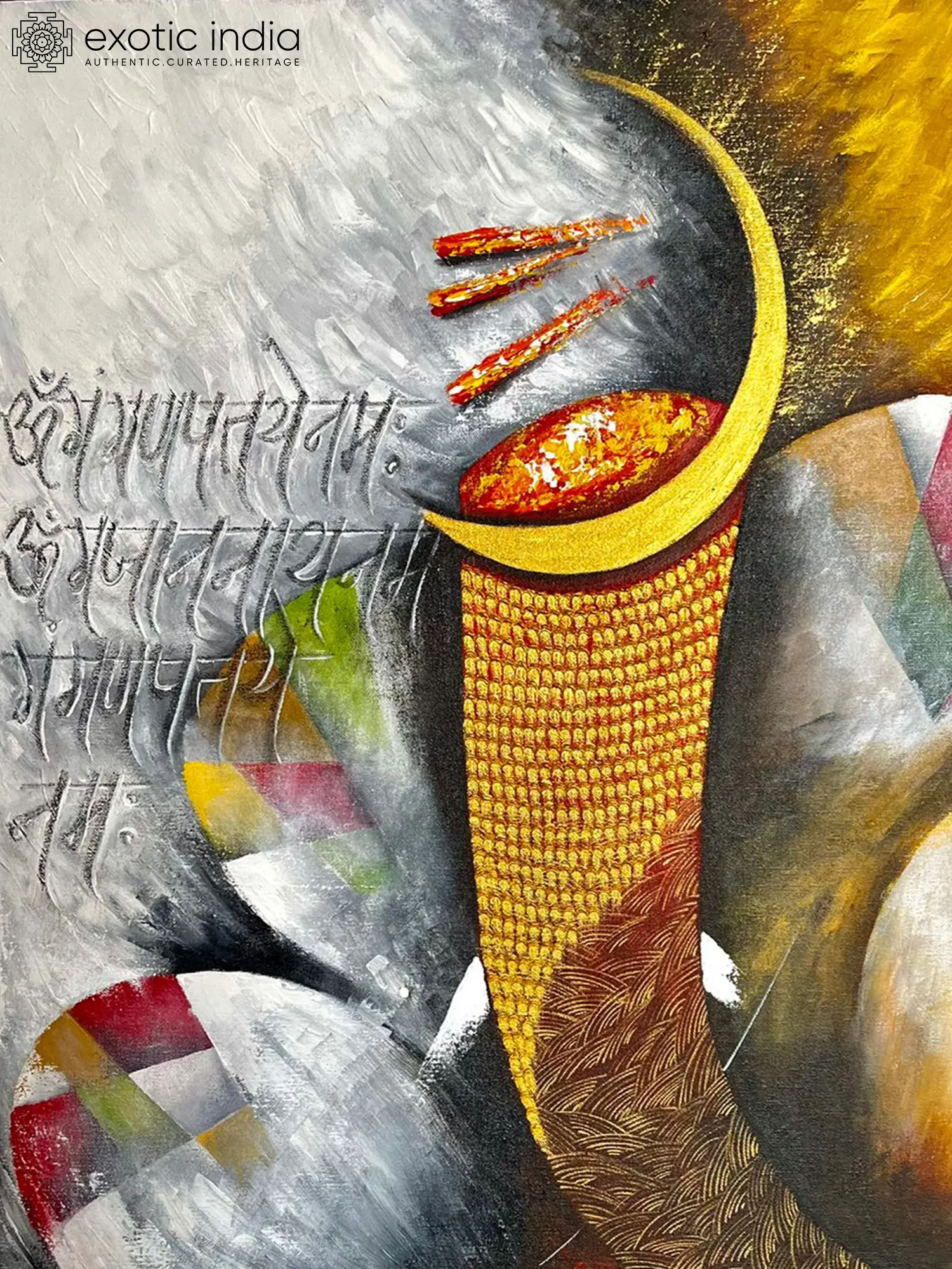 Ganesha With Her Devotee | Acrylic Painting On Canvas Board | By Arup Ratan Choudhury