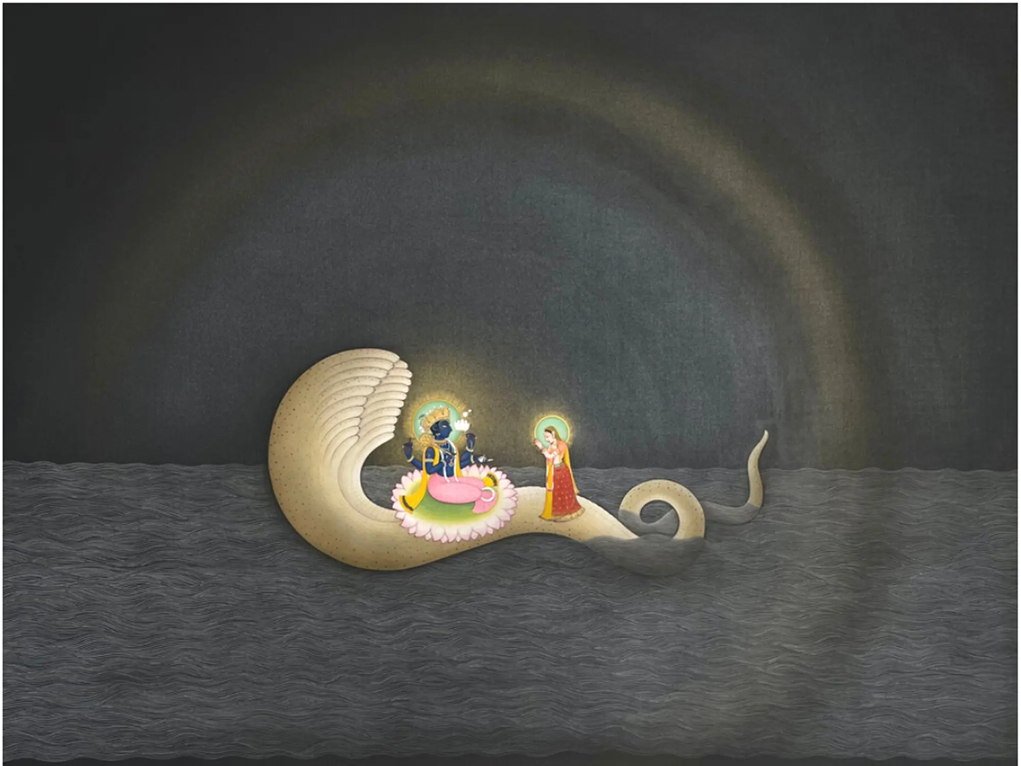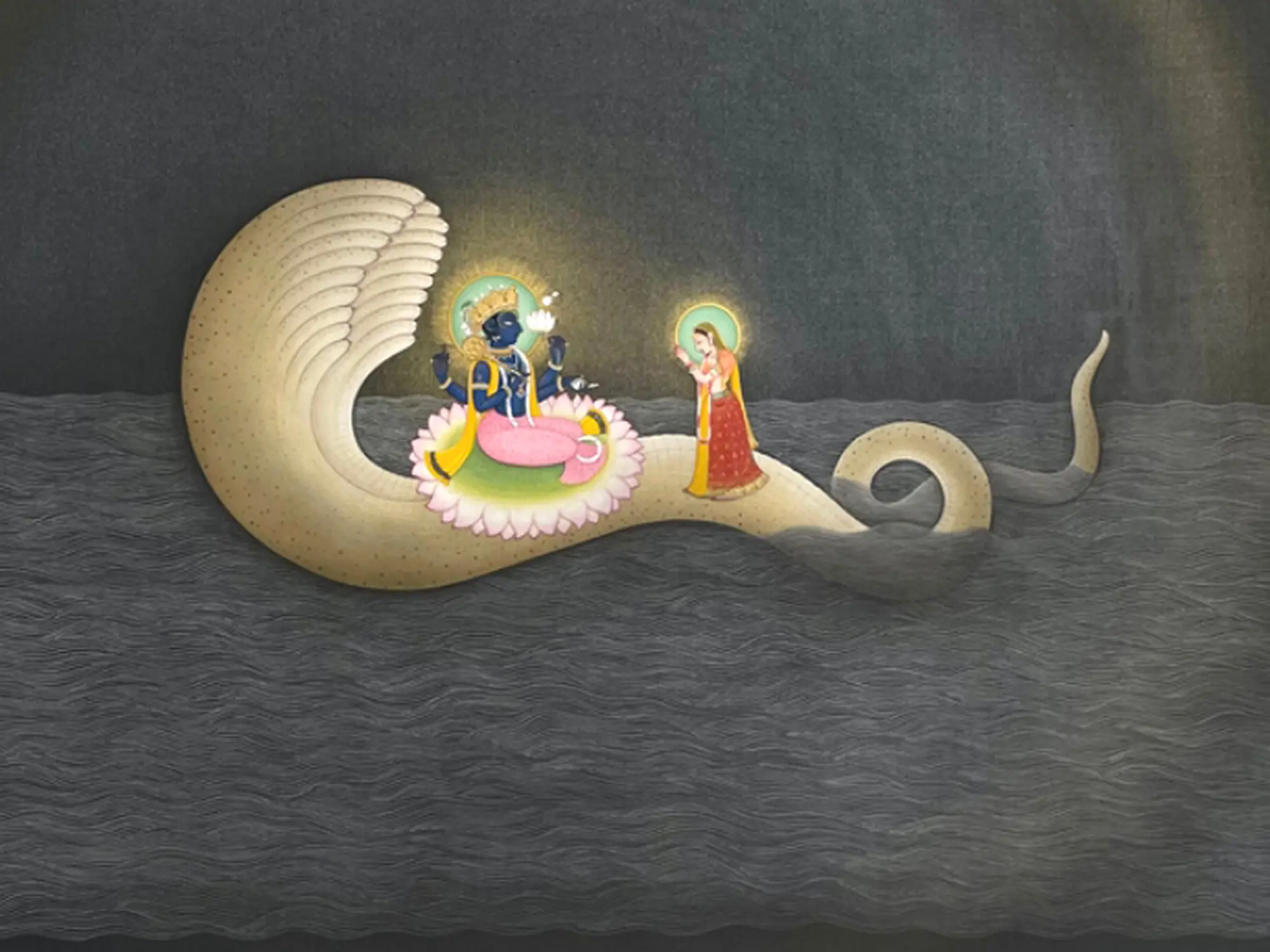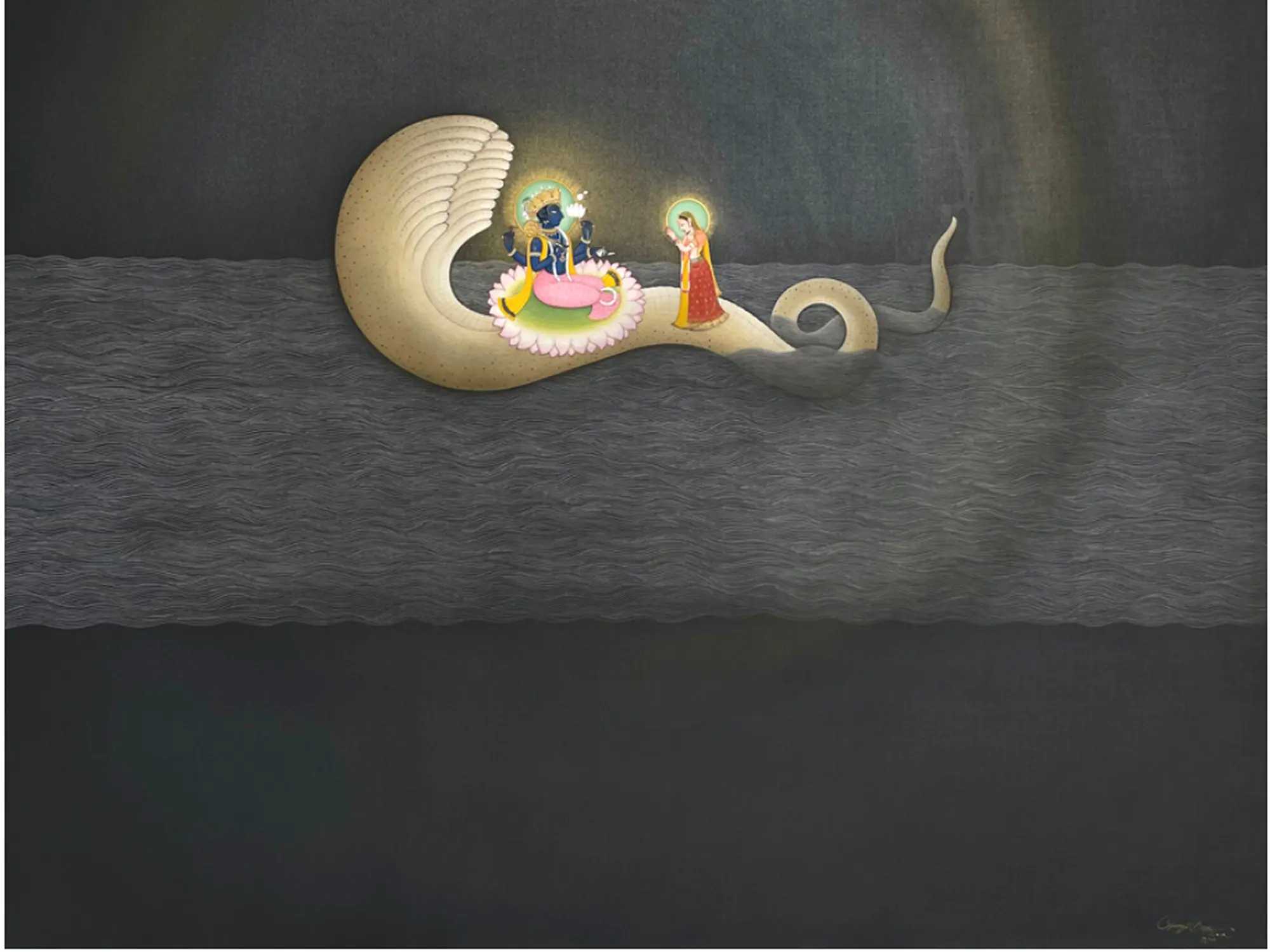 Anantasayana - Lord Vishnu With Goddess Lakshmi | Acrylic On Canvas | By Nikunja Bihari Das