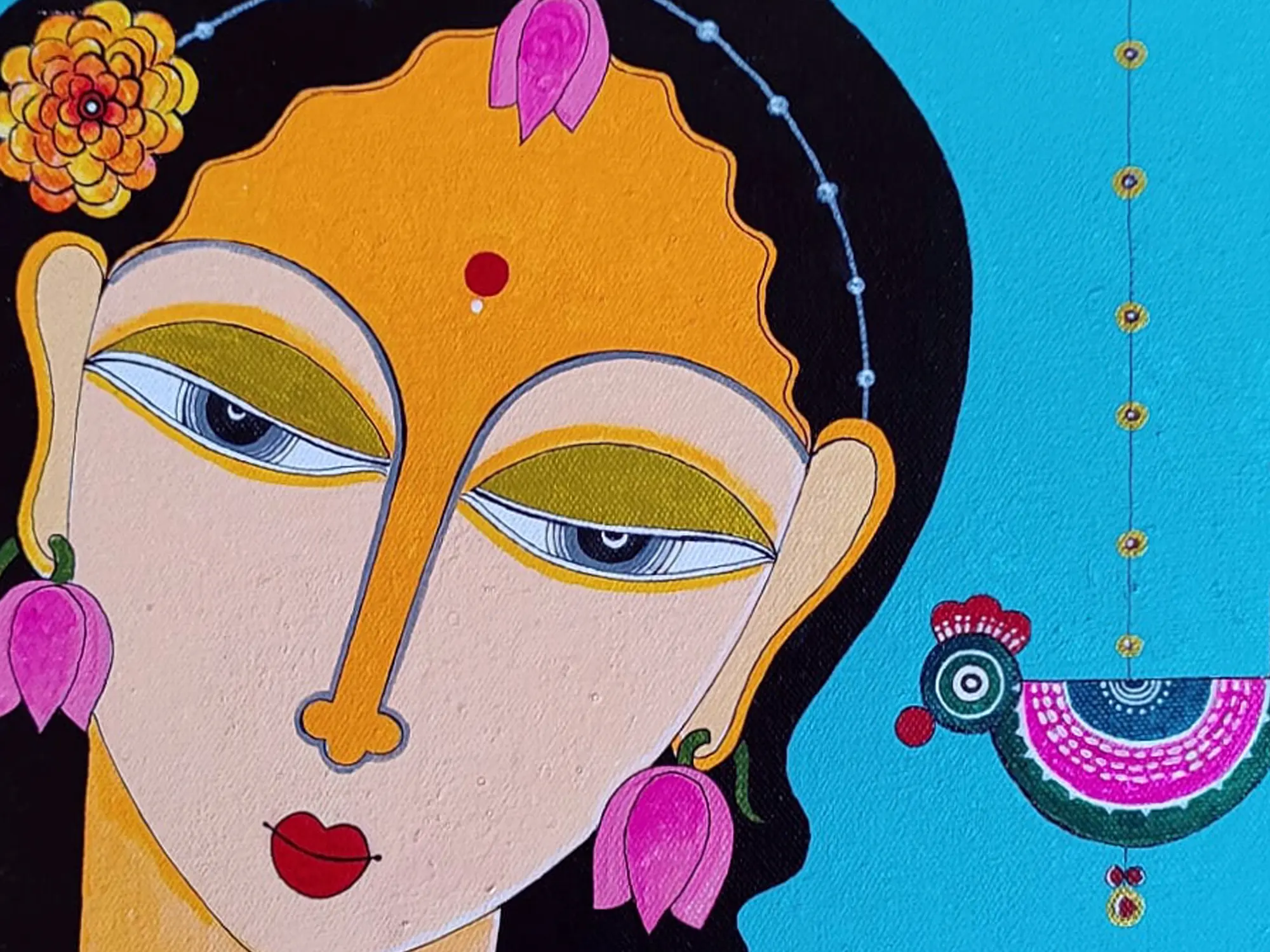 Beautiful Bride With Hold Lotus | Acrylic On Canvas | By Datta Jadhav