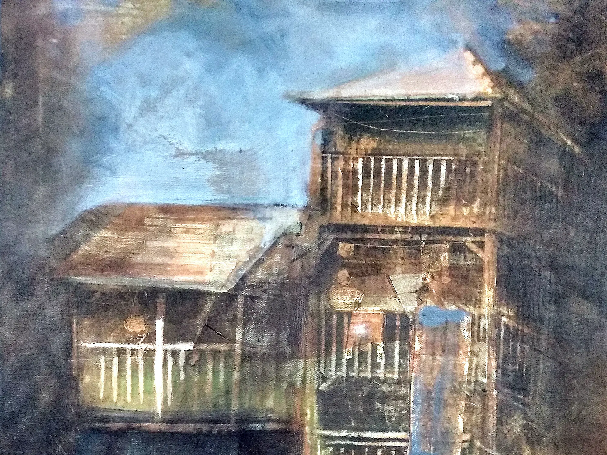 Evening Life in Old City | Acrylic and Charcoal on Canvas | Art by Harshad Godbole