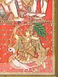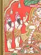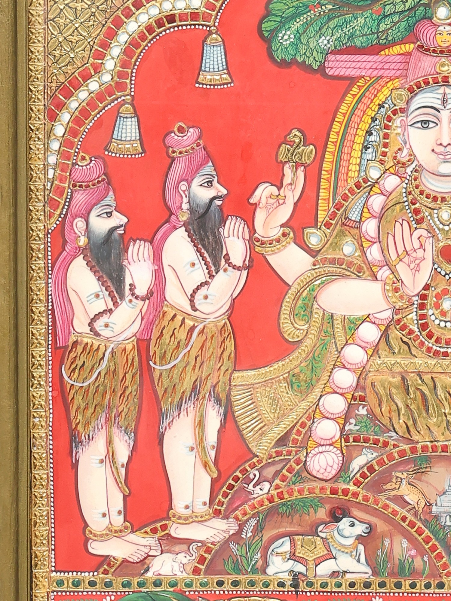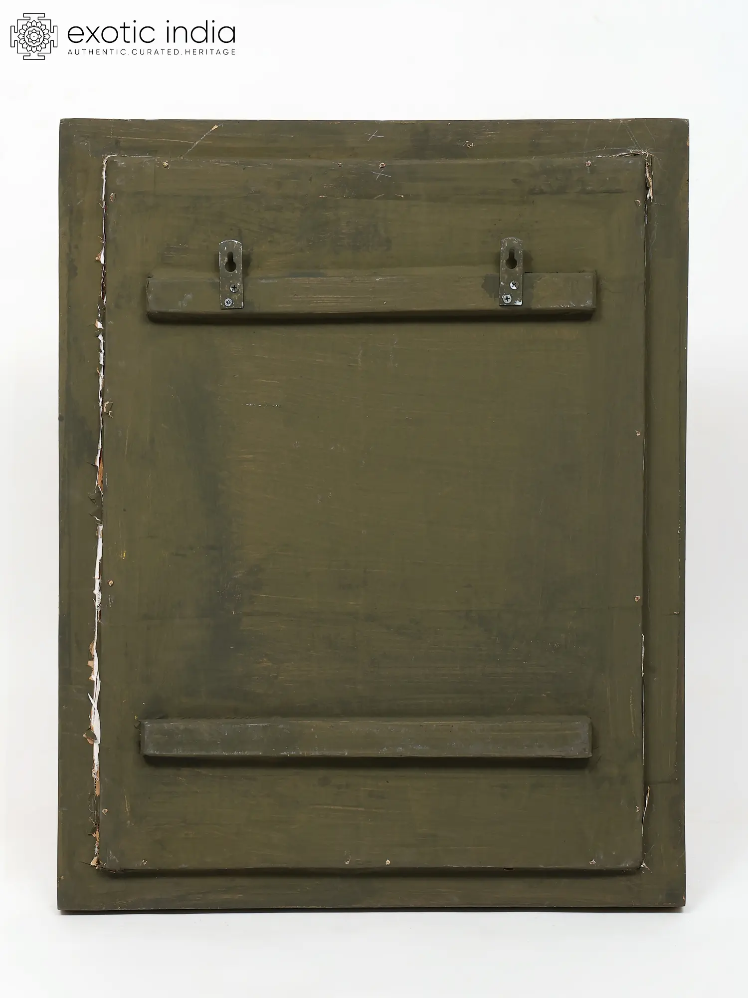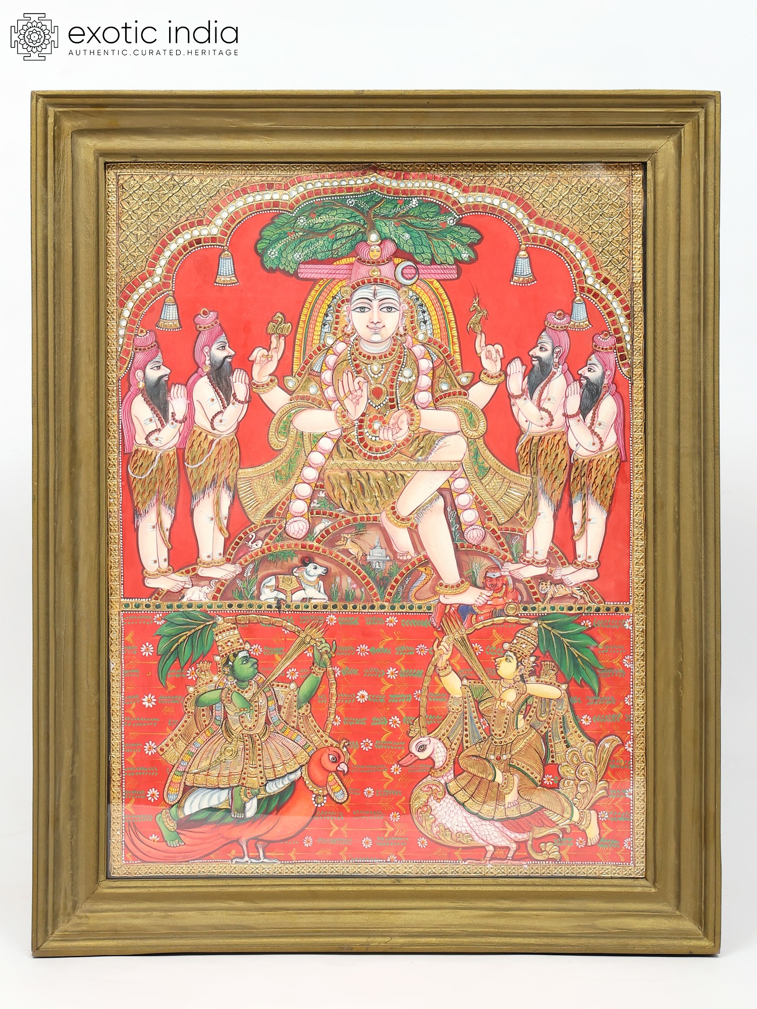 Shiva Parvati with Karttikeya | Tanjore Painting | With Vintage Teakwood Frame