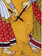 Dandiya Raas, a spirited Indian folk-dance originating from Gujarat, pulsates with rhythmic beats and vibrant colors. This Batik Painting, set against a striking yellow background, captures the essence of the dance with dynamic brushstrokes and intricate patterns. Amidst the lively depiction of swirling dancers, the painting's cracked texture adds depth, echoing the passage of time and the enduring spirit of tradition. Through the fusion of Dandiya Raas and Batik artistry, this masterpiece becomes a vibrant tapestry of culture, preserving the joyous energy and rich heritage of Gujarat for generations to cherish.