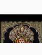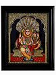 Hang this Tanjore painting in your sacred space, and let the essence of Narasimha and Lakshmi fill your surroundings with divine energy. fearsome yet compassionate Narasimha, an incarnation of Lord Vishnu, emerges with awe-inspiring majesty. His fierce countenance is softened by the presence of the gentle Lakshmi, signifying the harmonious balance of power and grace as the judicious use of 24 karat gold adds complete resplendent glow to this artwork.