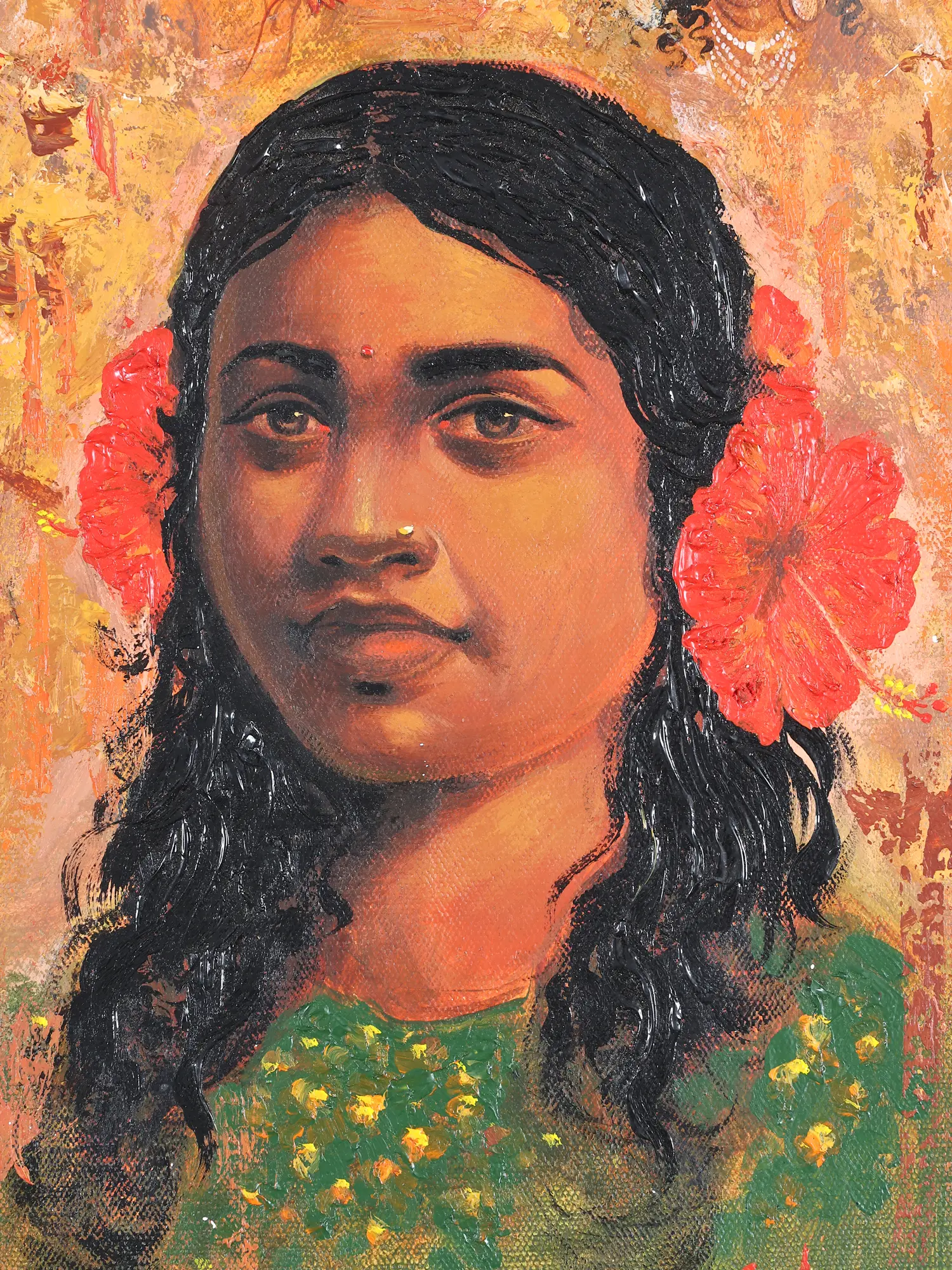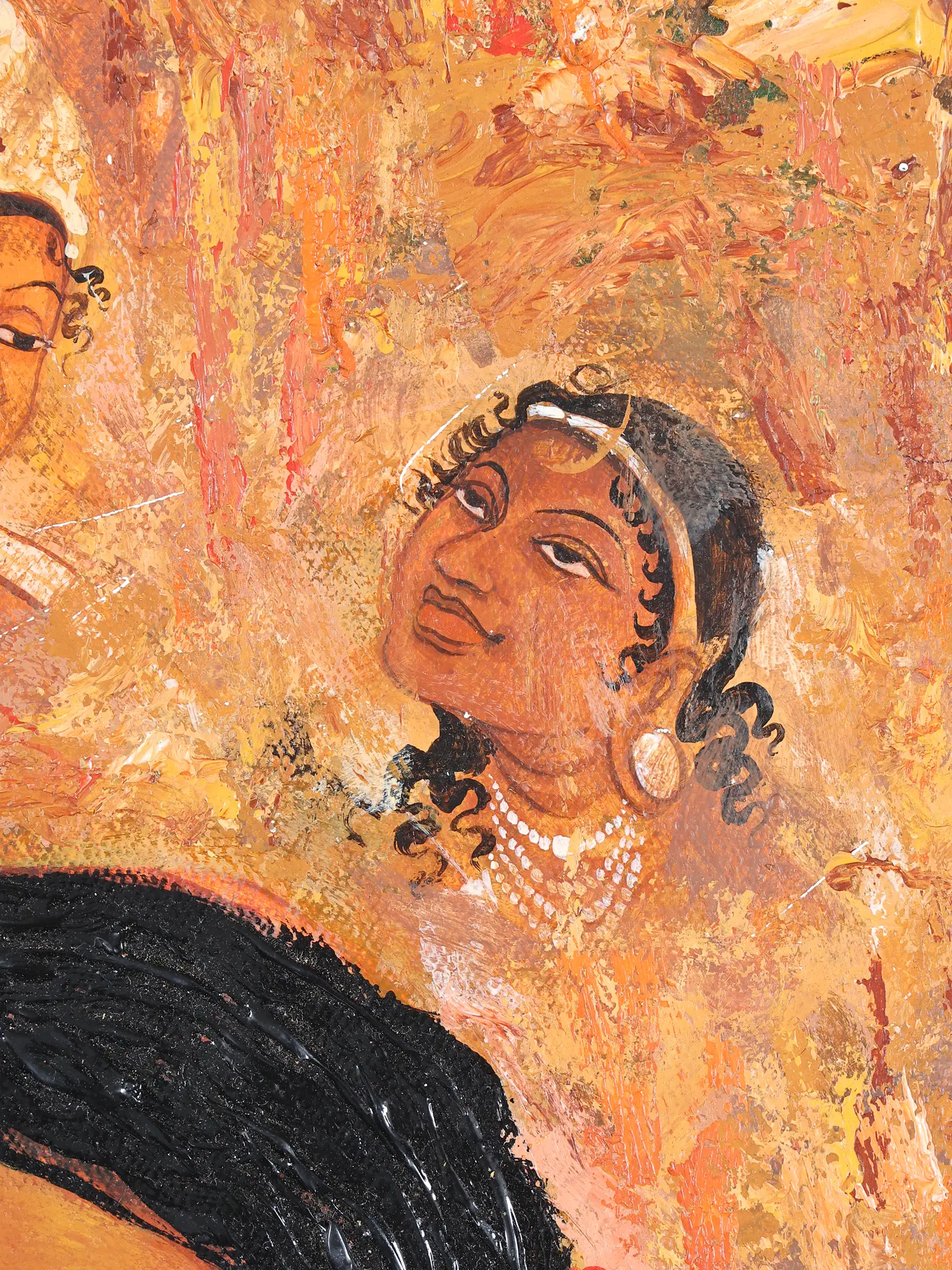Buddha Side Face Oil Painting with Vintage Frame