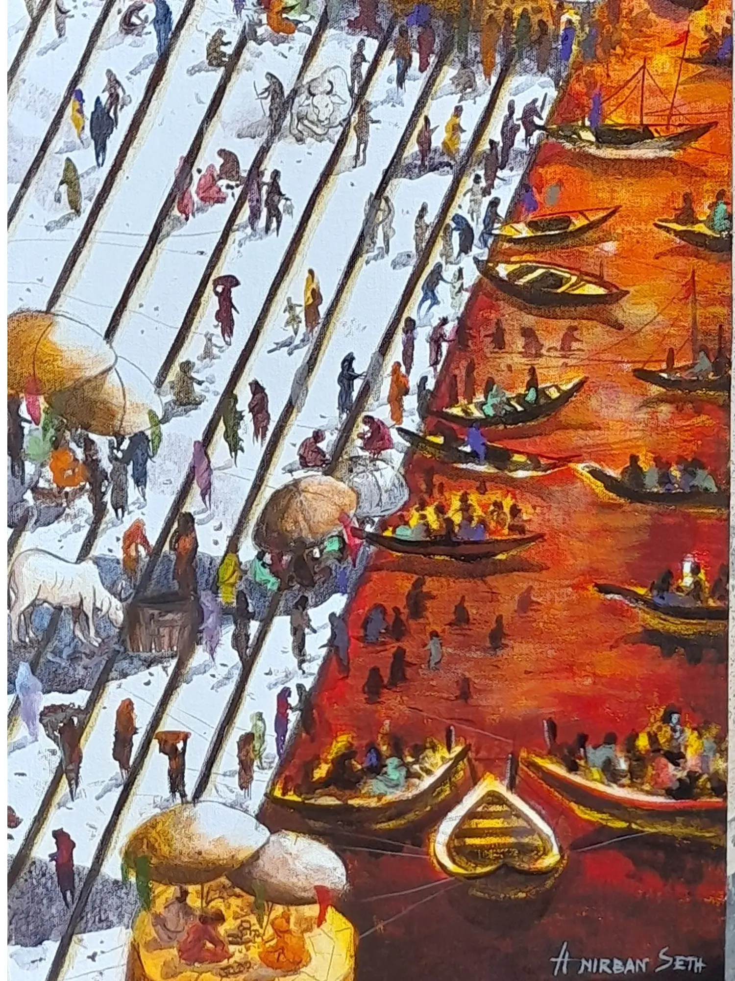 Vibrant Ghats Of Varanasi | Acrylic On Canvas | By Anirban Seth