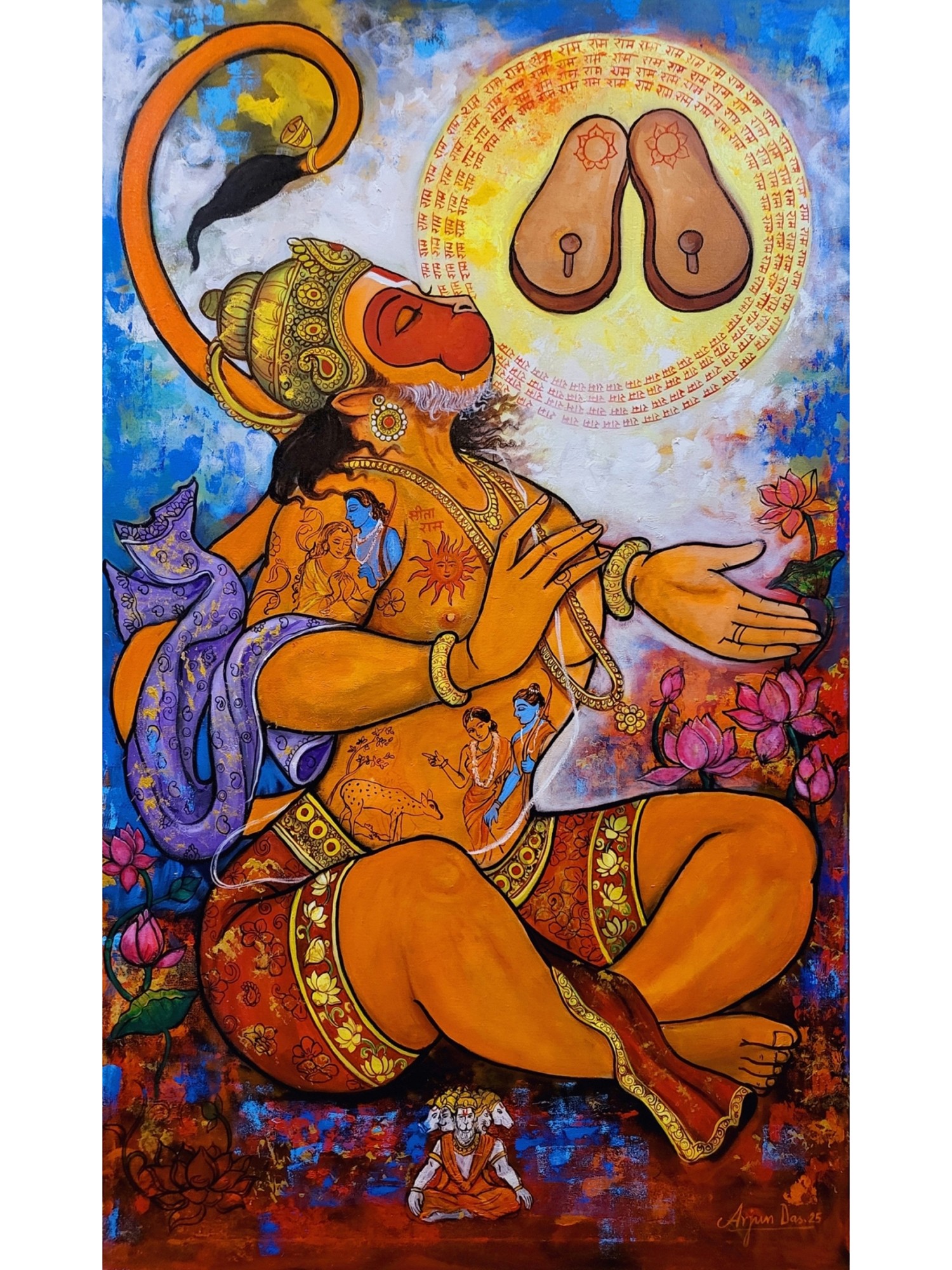 Devotion Of Hanuman | Acrylic On Canvas | By Arjun Das