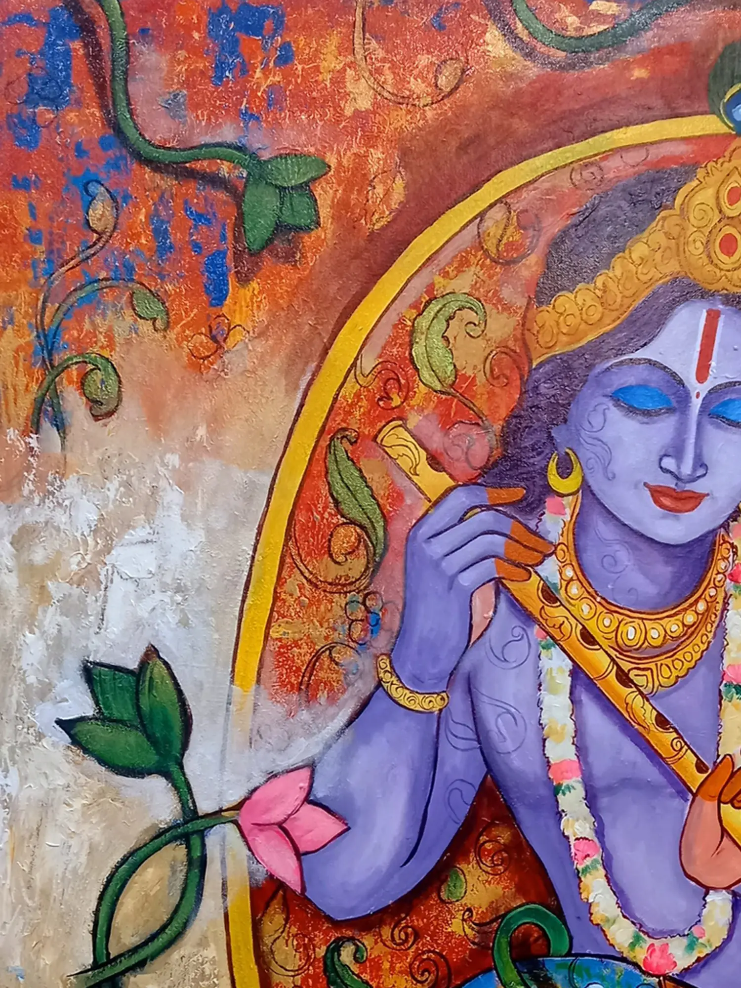 Devotion Of Lord Krishna | Acrylic On Canvas | By Arjun Das