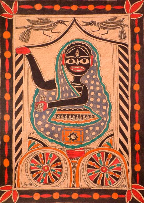 Madhubani Painting on Hand Made Paper treated with Cow DungArtist Vidya Devi and Dhirendra Jha
