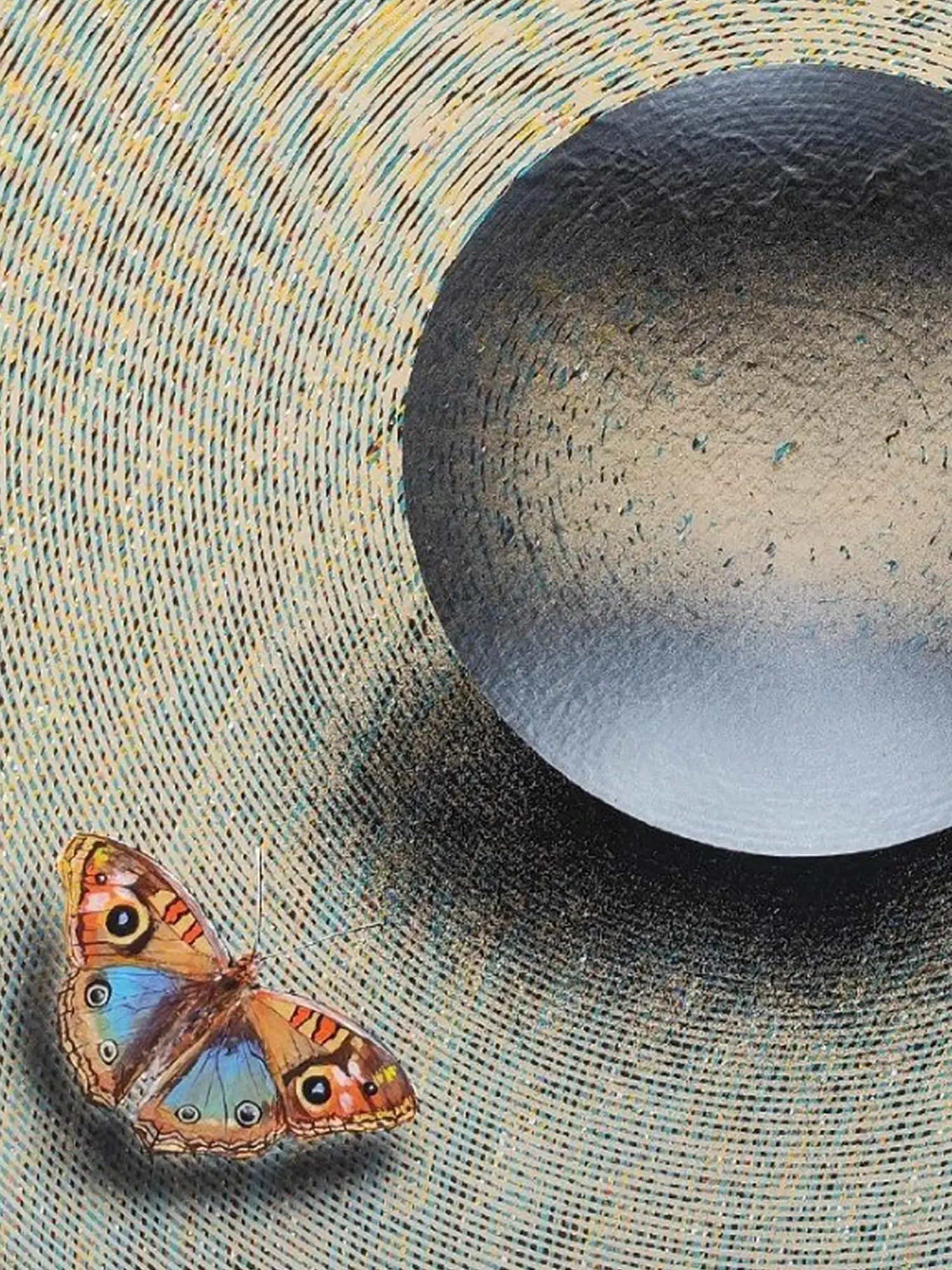Ghanshyam Gupta’s hand is evident in every brushstroke, carefully applying layer upon layer of acrylic to achieve a stunning visual effect. The square canvas, a testament to balance and intention, becomes a microcosm mirroring the grander universe. The artwork invites us to pause, to reflect on the delicate balance between order and chaos, between the universal and the individual, and to marvel at the ongoing miracle that is life itself. Displaying at 24 inches by 24 inches, this piece will be a conversation starter for any space.