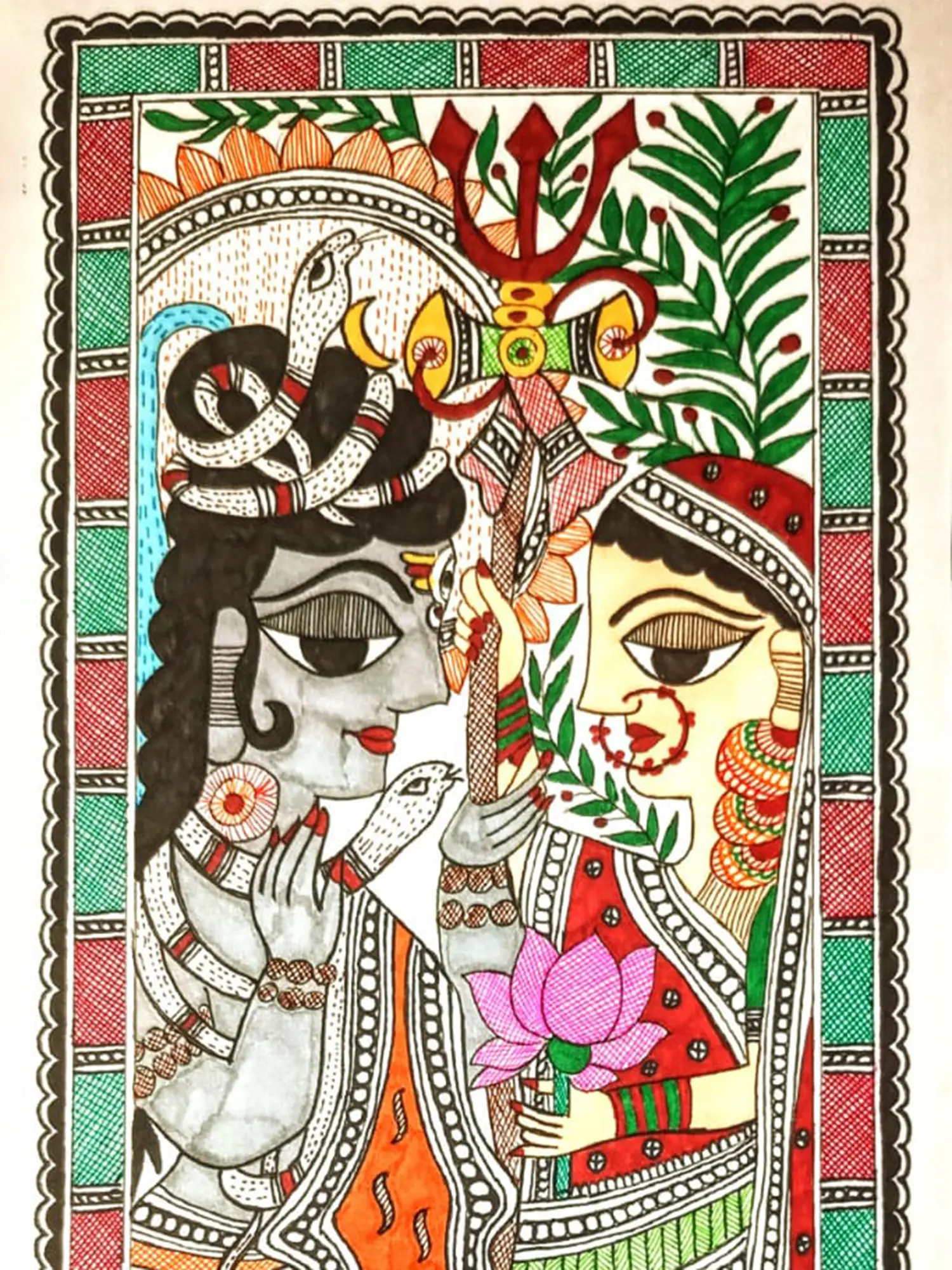 Madhubani Shiv Parvati Painting | Alcohol Markers And Fineliners On Paper | By Ruchi