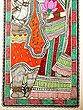 Madhubani, or Mithila painting, is a traditional art form originating from the Mithila region of India. It is renowned for its complex geometrical patterns, vibrant colors, and depictions of nature, deities, and mythological scenes. Historically, these paintings were created by women on the walls of their homes to celebrate auspicious occasions and tell stories. The art form has since evolved to be practiced on paper, becoming a popular medium for preserving and sharing cultural narratives. This particular piece showcases the characteristic delicate linework and bold color application that define the authenticity of Madhubani art, allowing the divine figures to emanate a vibrant energy.