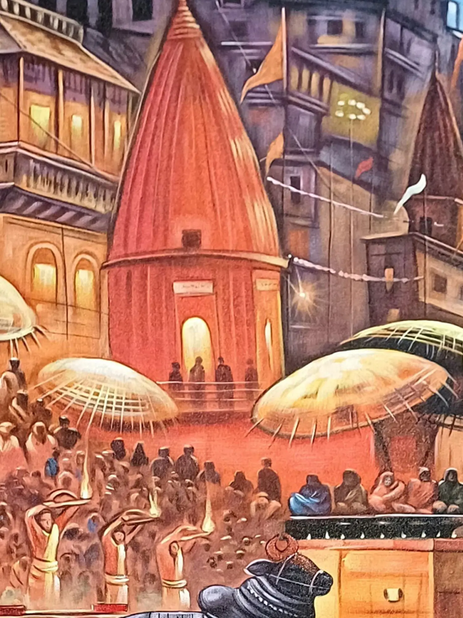 Morning Aarti At Varanasi Ghat | Oil Painting On Canvas | By Jagriti Bhardwaj