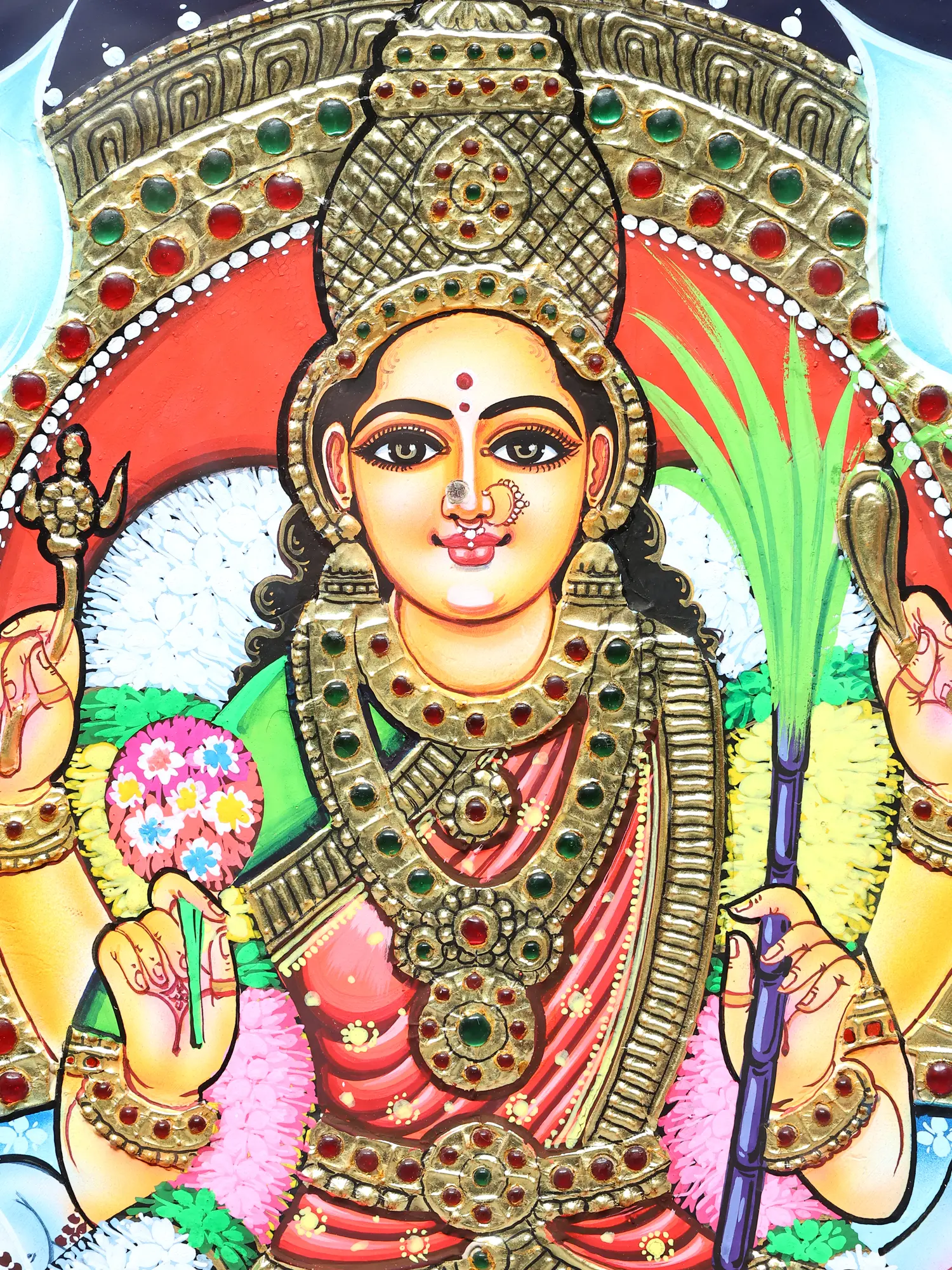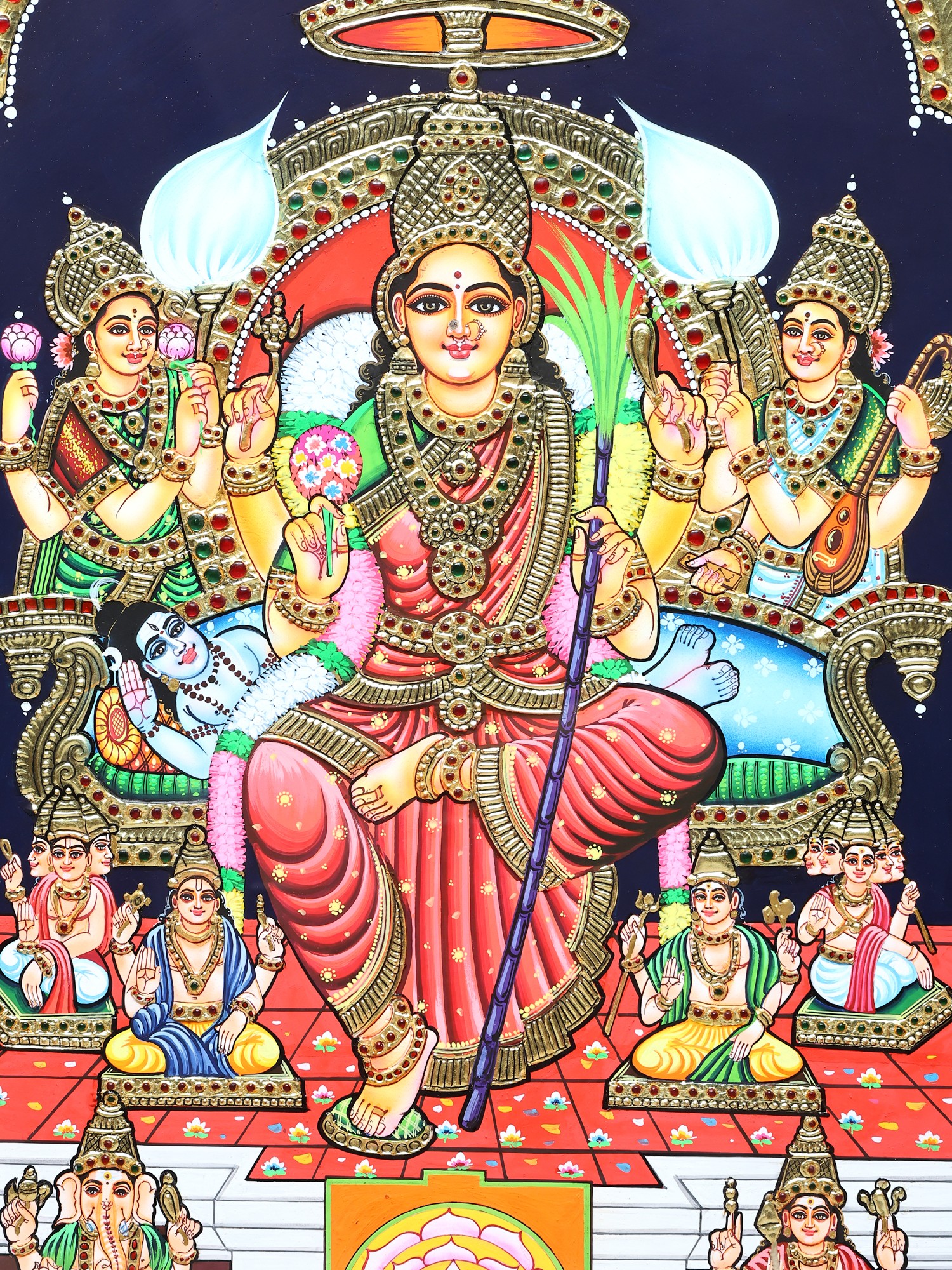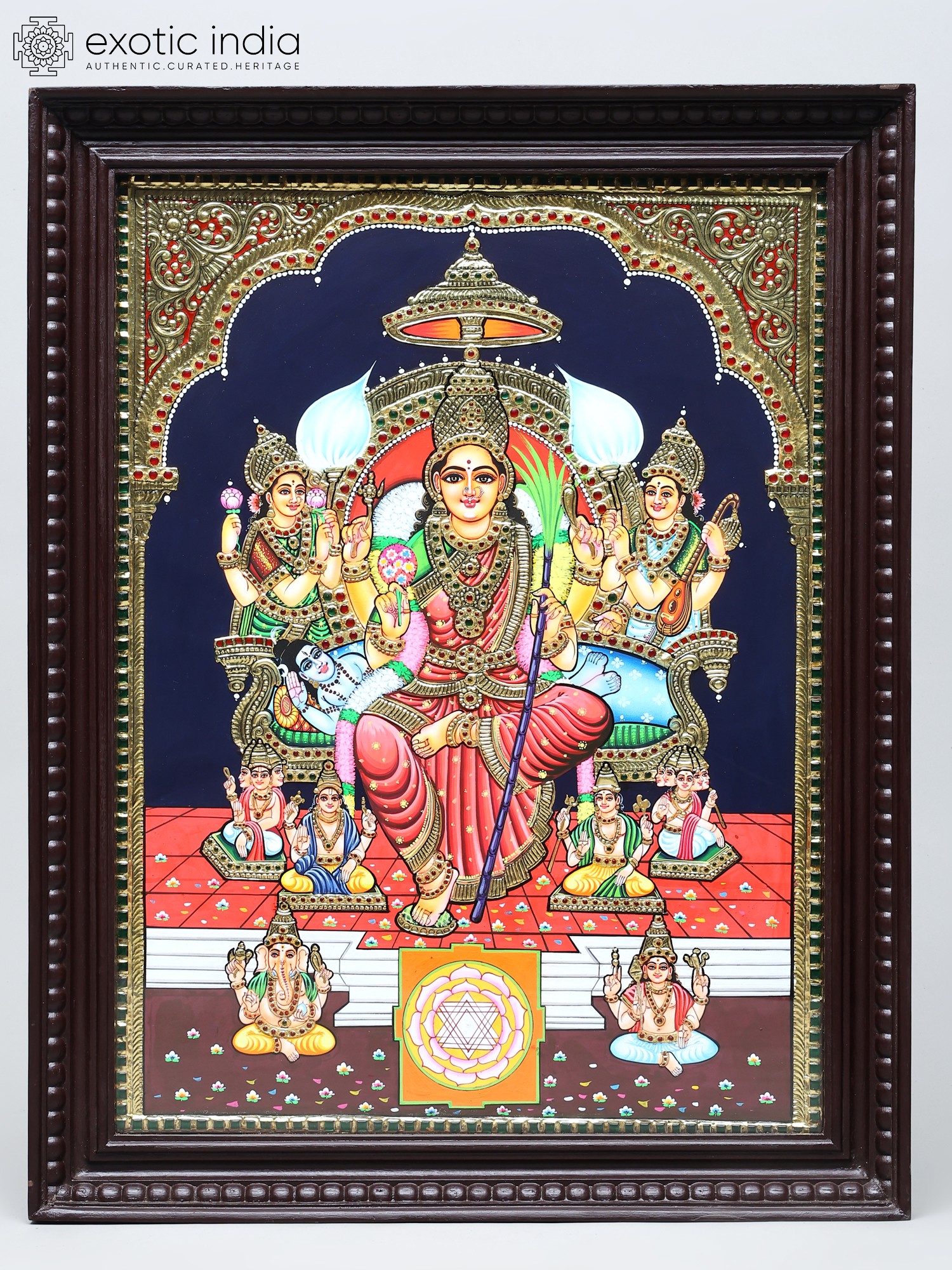 Goddess Rajarajeshwari Tanjore Painting | Traditional Colors With 24K Gold | Teakwood Frame