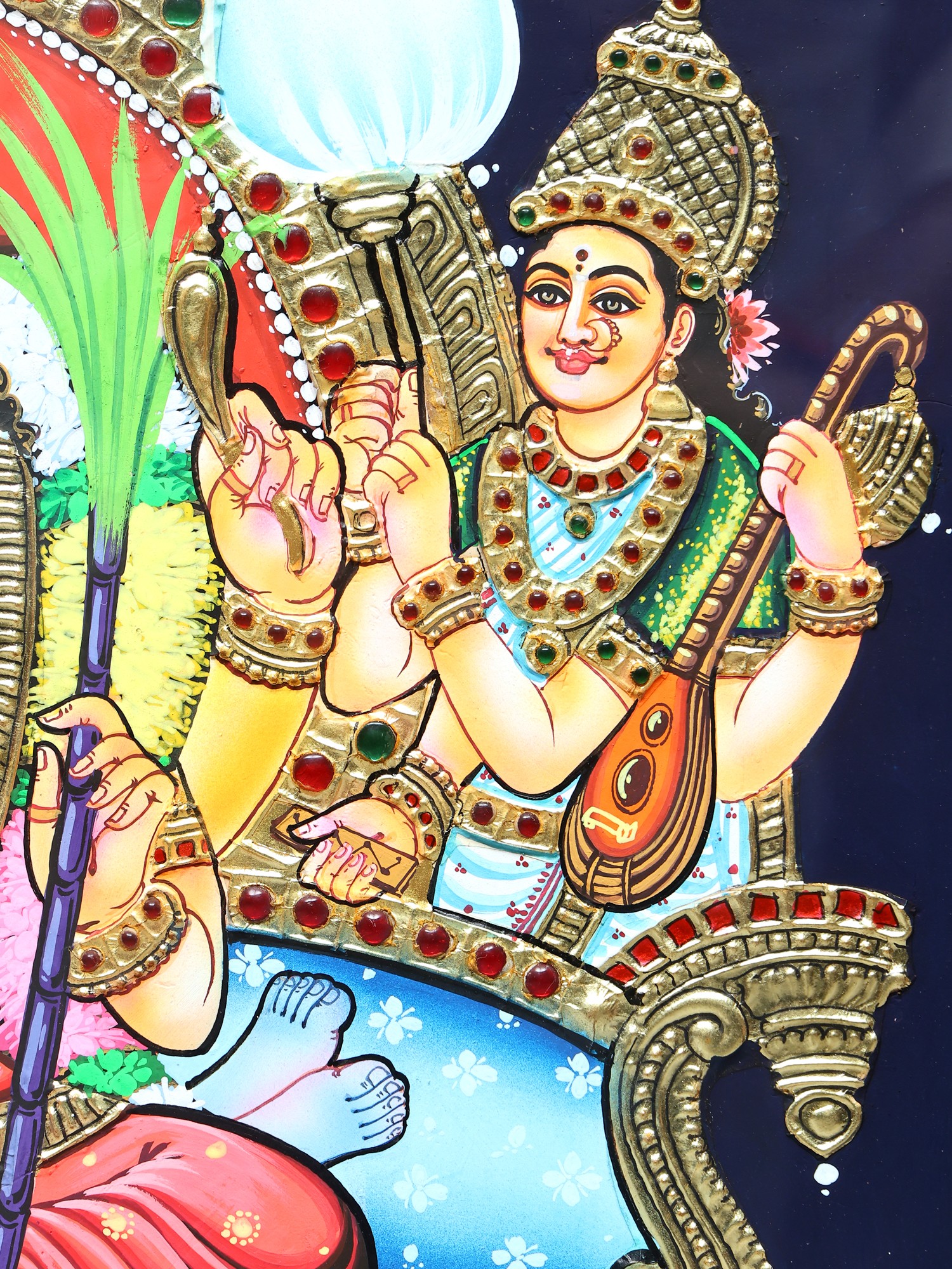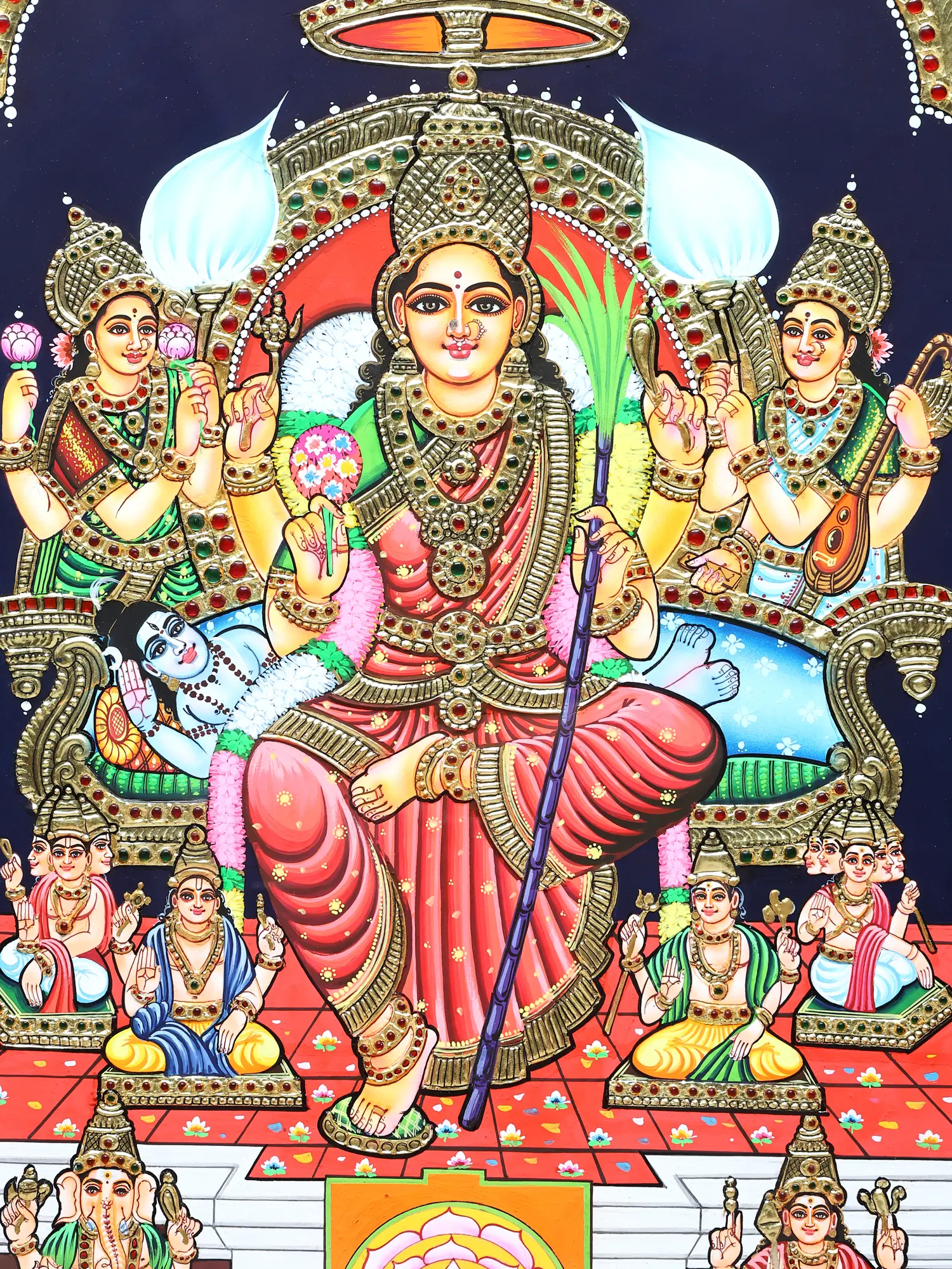 Goddess Rajarajeshwari Tanjore Painting with Frame | Traditional Colors with 24K Gold