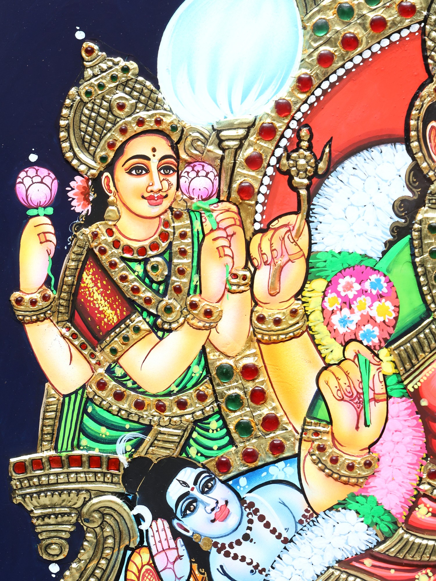 Lord Tirupati Balaji with Goddess Lakshmi and Vaishnava Symbols | Traditional Colors with 24 Karat Gold | Framed Tanjore Painting