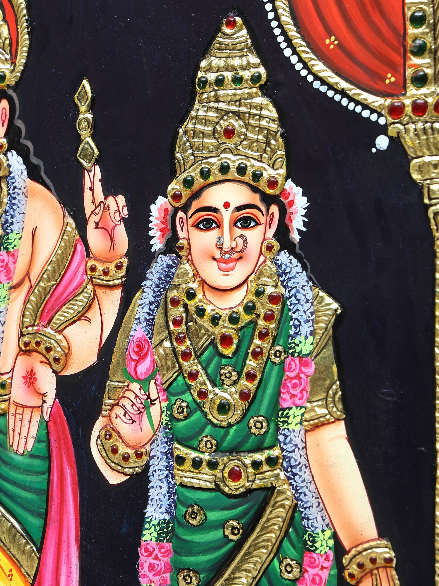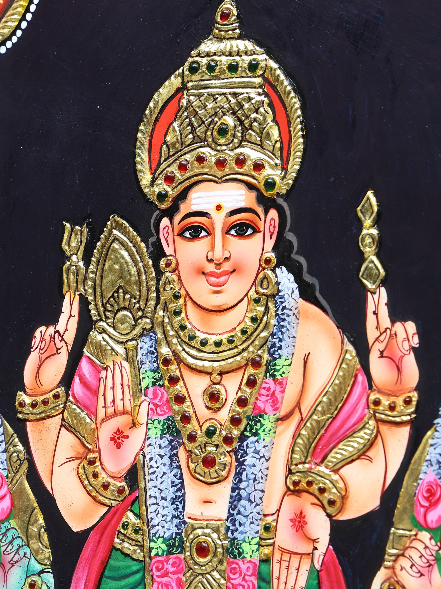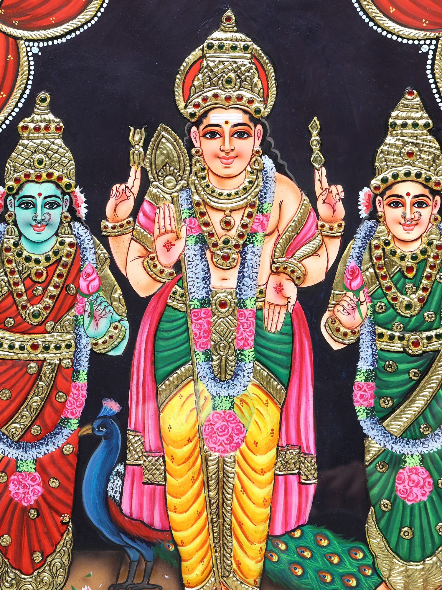 Lord Kartikeya with Devasena & Valli Tanjore Painting | Traditional Colors with 24 Karat Gold | With Frame