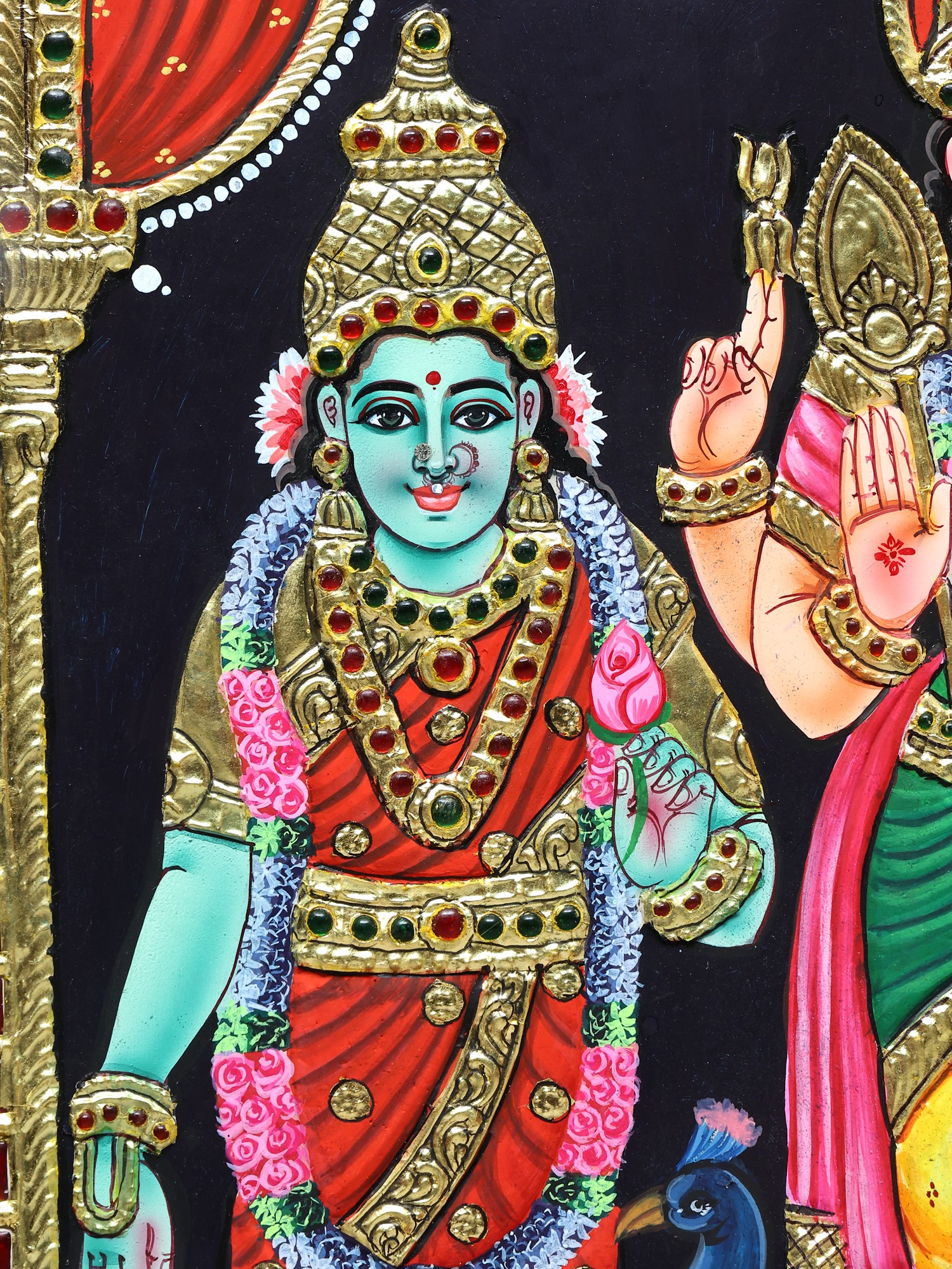 Lord Kartikeya (Murugan) Tanjore Painting | Traditional Colors with 24K Gold | Teakwood Frame | Handmade