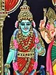 Standing Lord Kartikeya Tanjore Painting with Devsena & Valli | Traditional Colors with 24 Karat Gold | With Frame