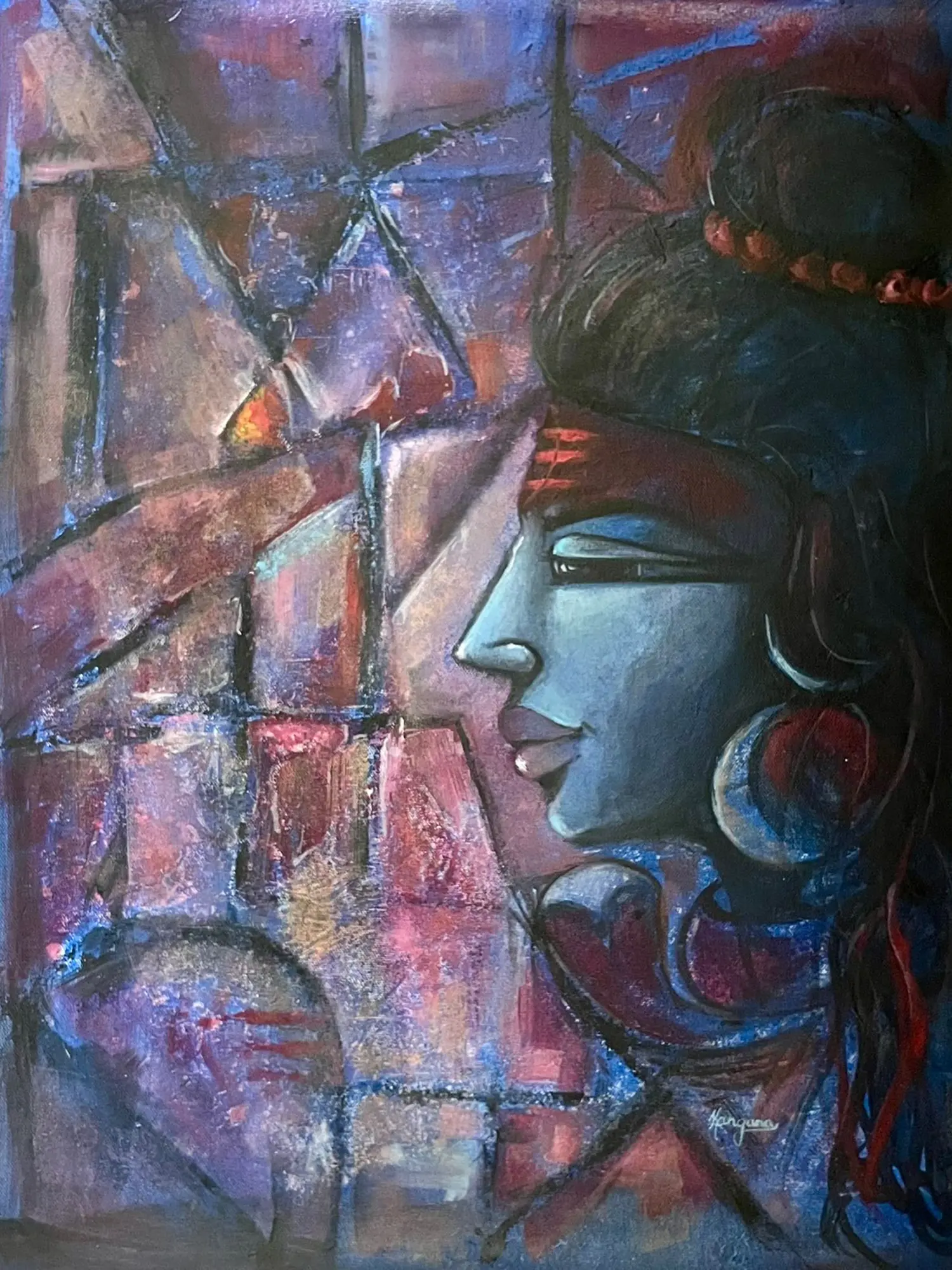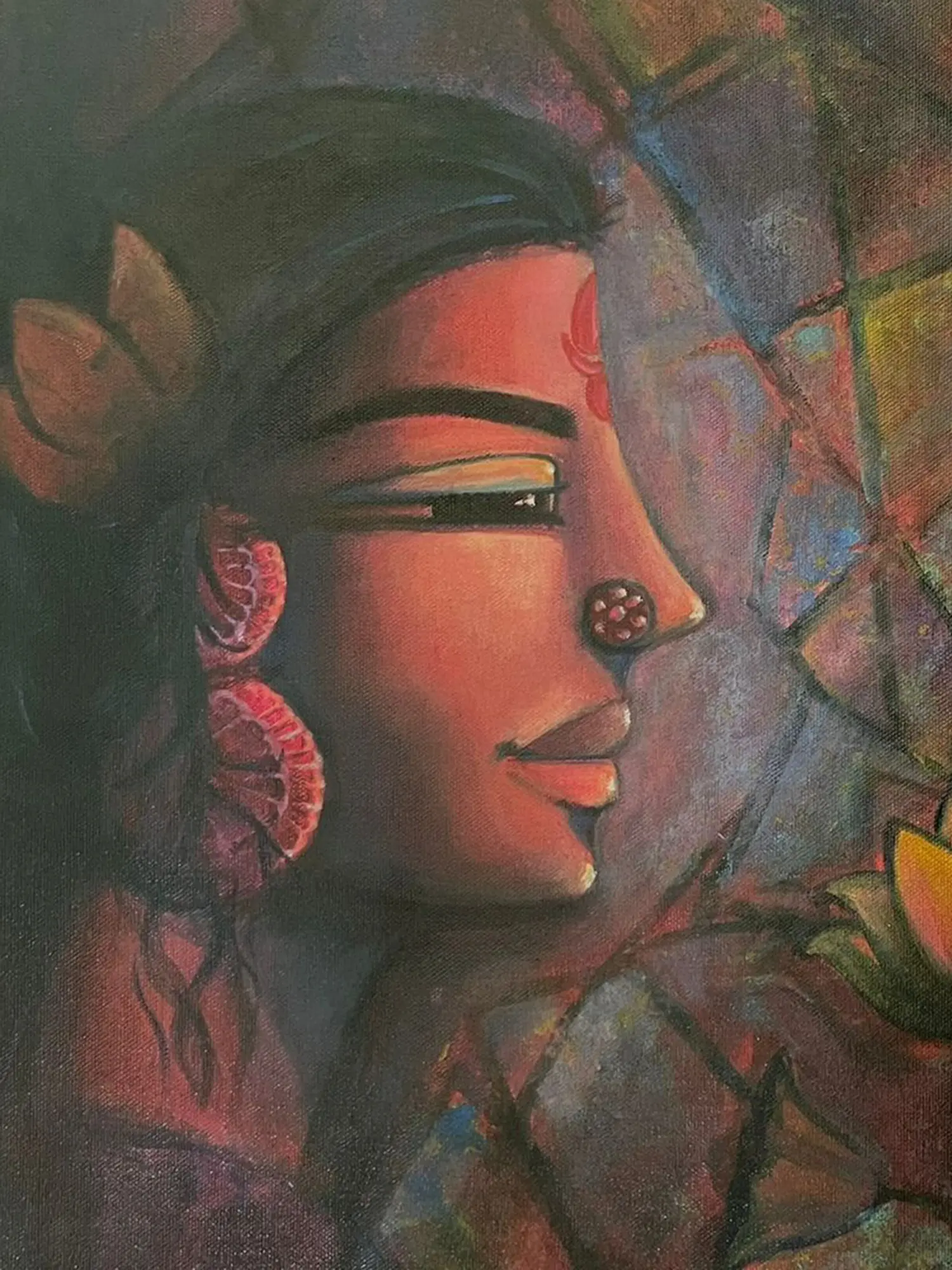 Devi Parvati in Lord Shiva Background | Acrylic on Canvas | Painting By Jugal Sarkar