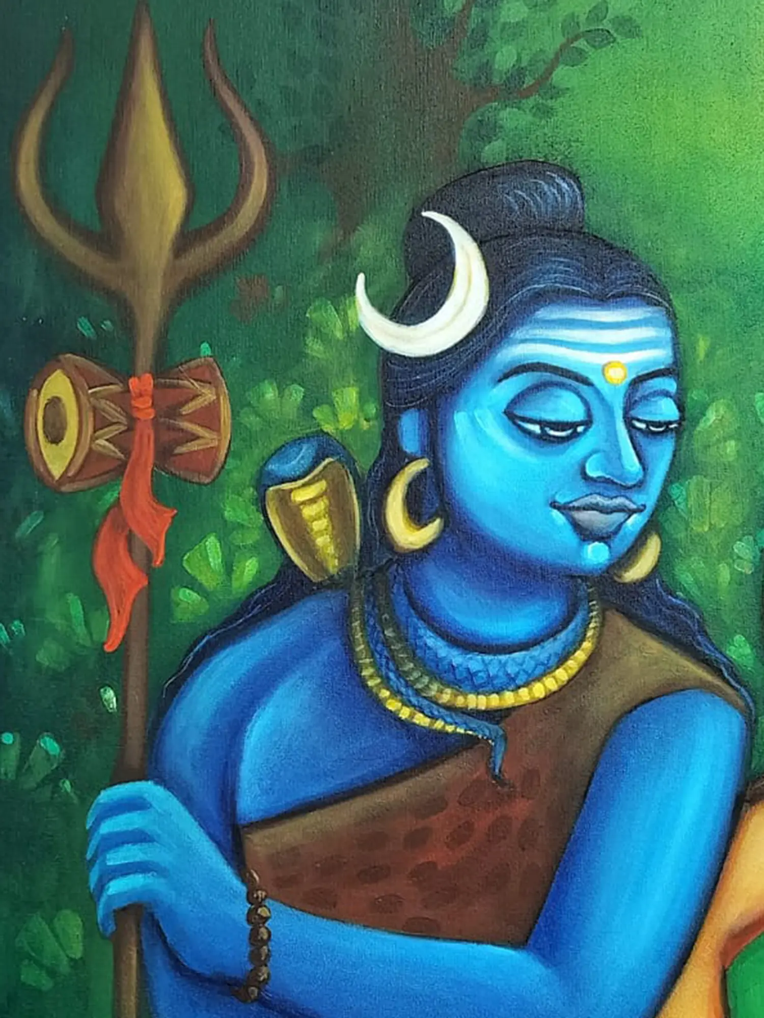 12" Goddess Parvati Worshipping Lord Shiva | Watercolor Painting