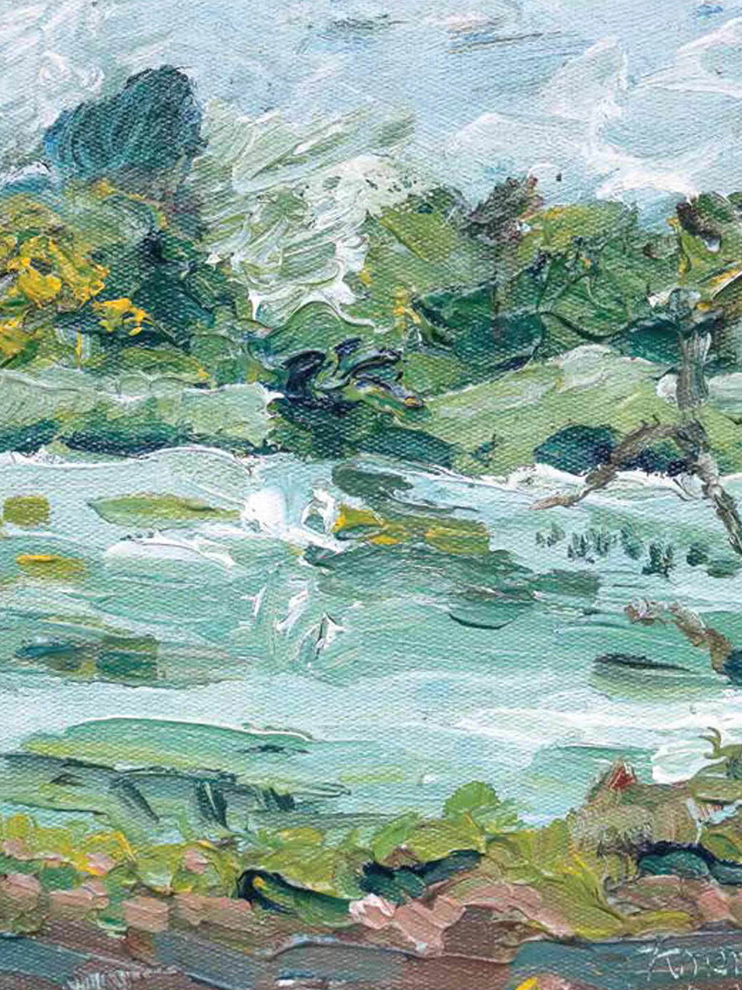 Forest Landscape in Blue Sky - With Frame | Acrylic Color | By Parisha Thukral