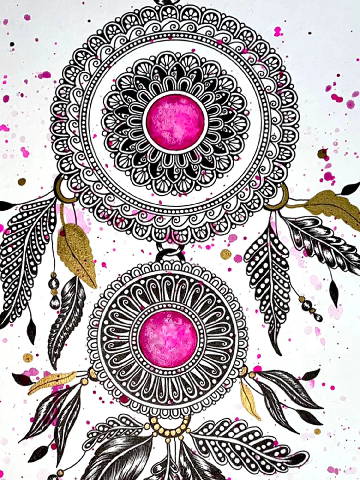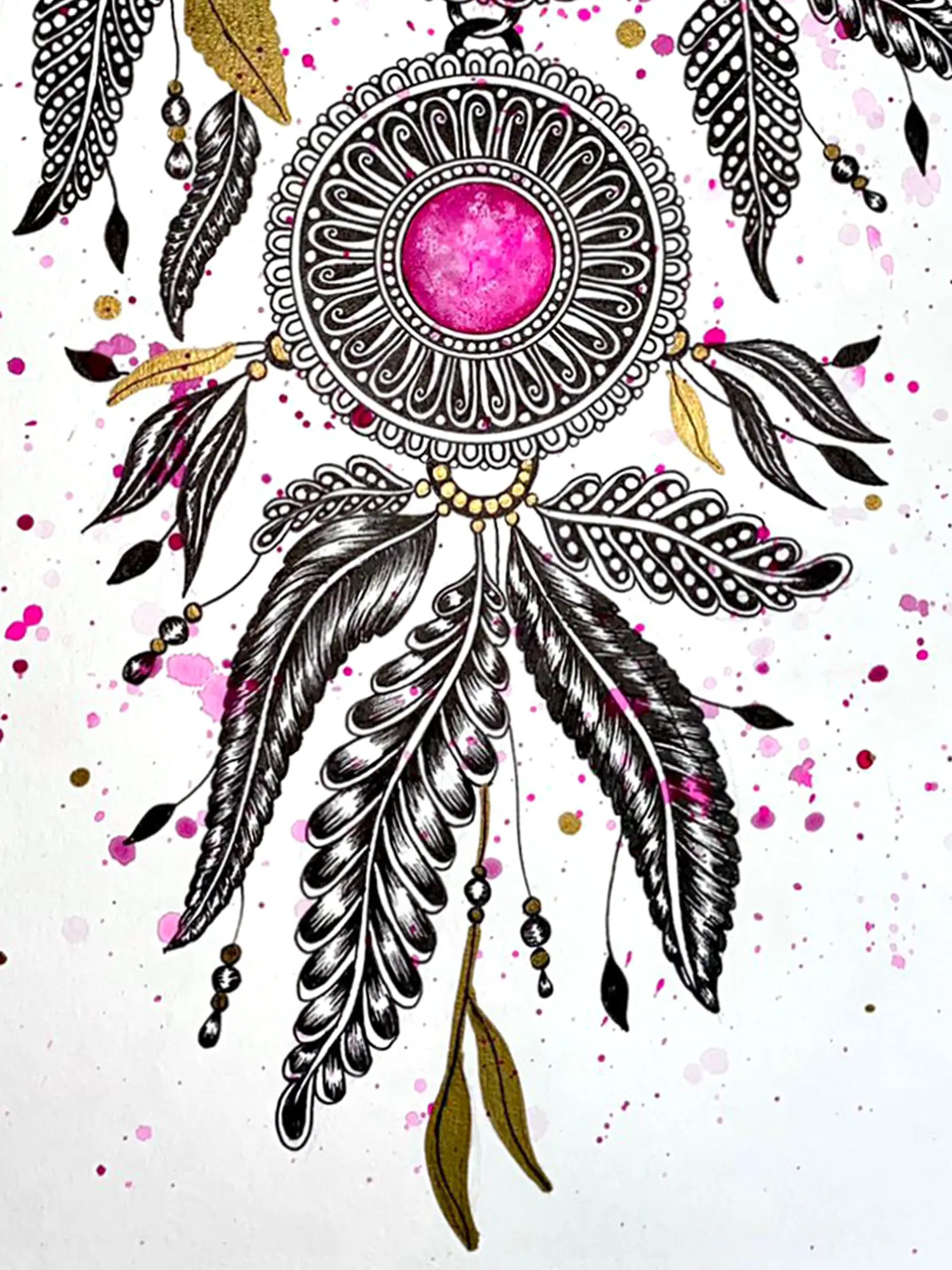 In the enchanting realm of the Dreamcatcher Mandala, intricate patterns and delicate feathers intertwine to form a tapestry of beauty and protection. Against the backdrop of celestial blue, the mandala exudes a sense of tranquillity and serenity, inviting viewers to surrender to the gentle embrace of sleep and dreams. Each intricate detail and swirling motif serves as a guardian of the night, warding off negative energies and ushering in a sense of peace and security.