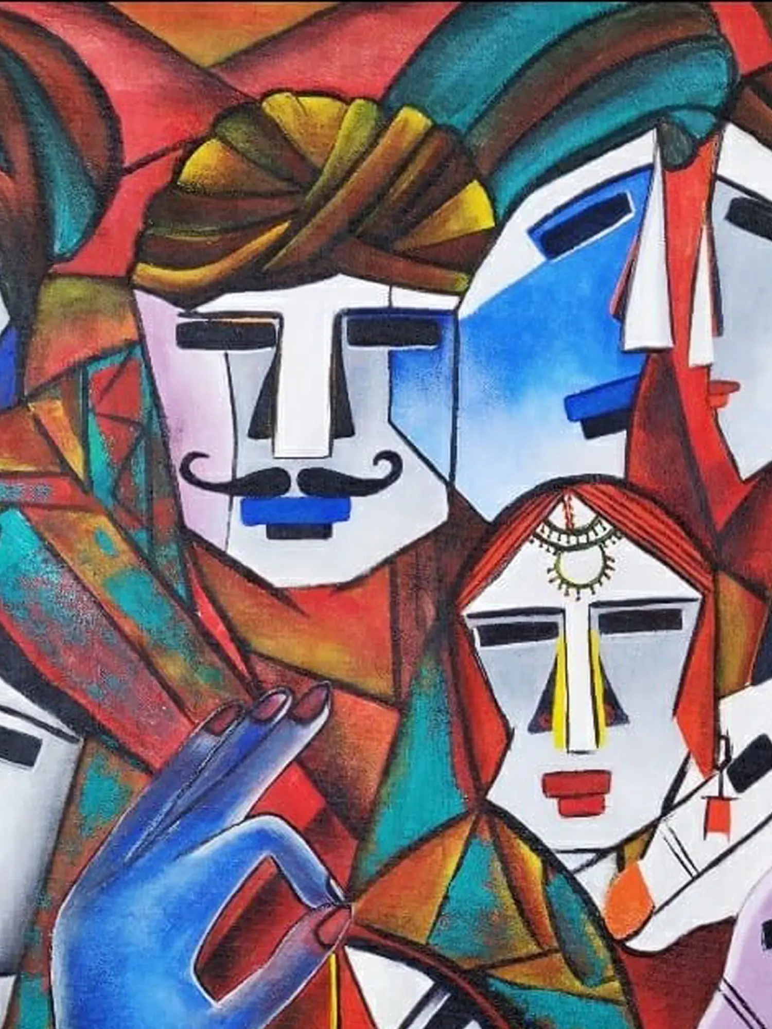 Immerse yourself in a vibrant tapestry of human connection and cultural narrative. This captivating artwork invites you to explore the multifaceted expressions of life, captured through bold strokes and an arresting palette that speaks volumes.