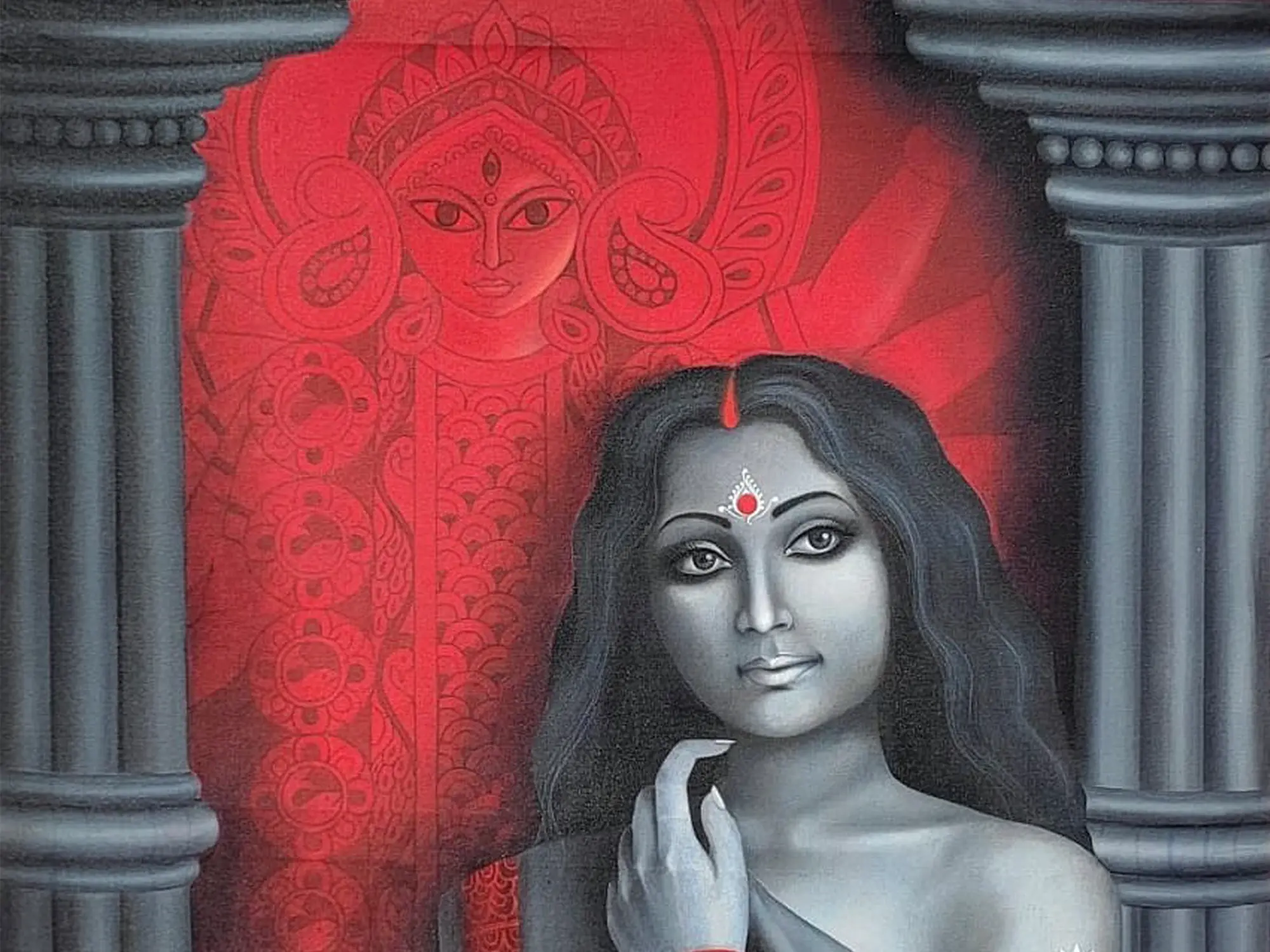 Trinetra Durga | Acrylic On Canvas | By Prabir Chatterjee