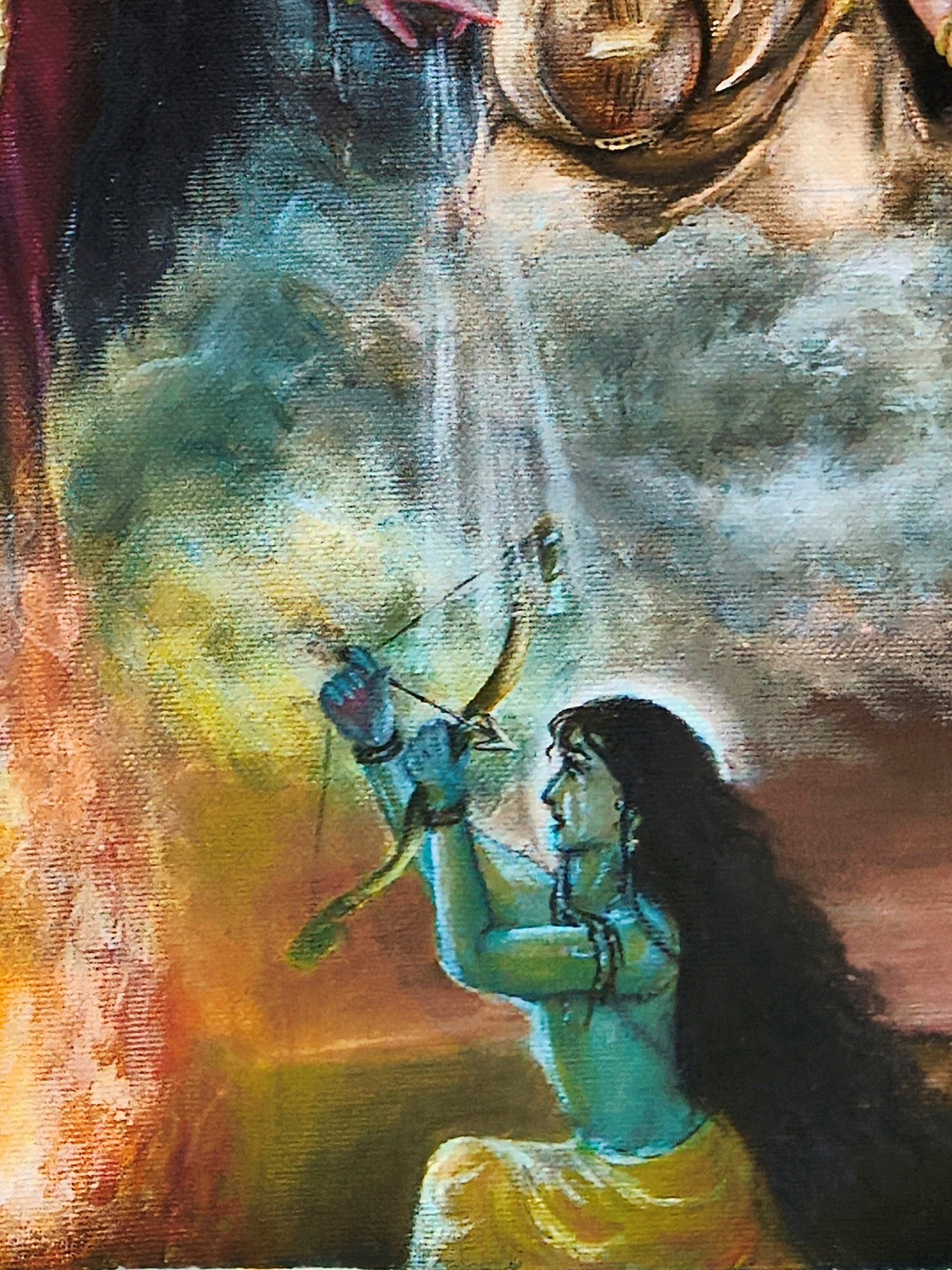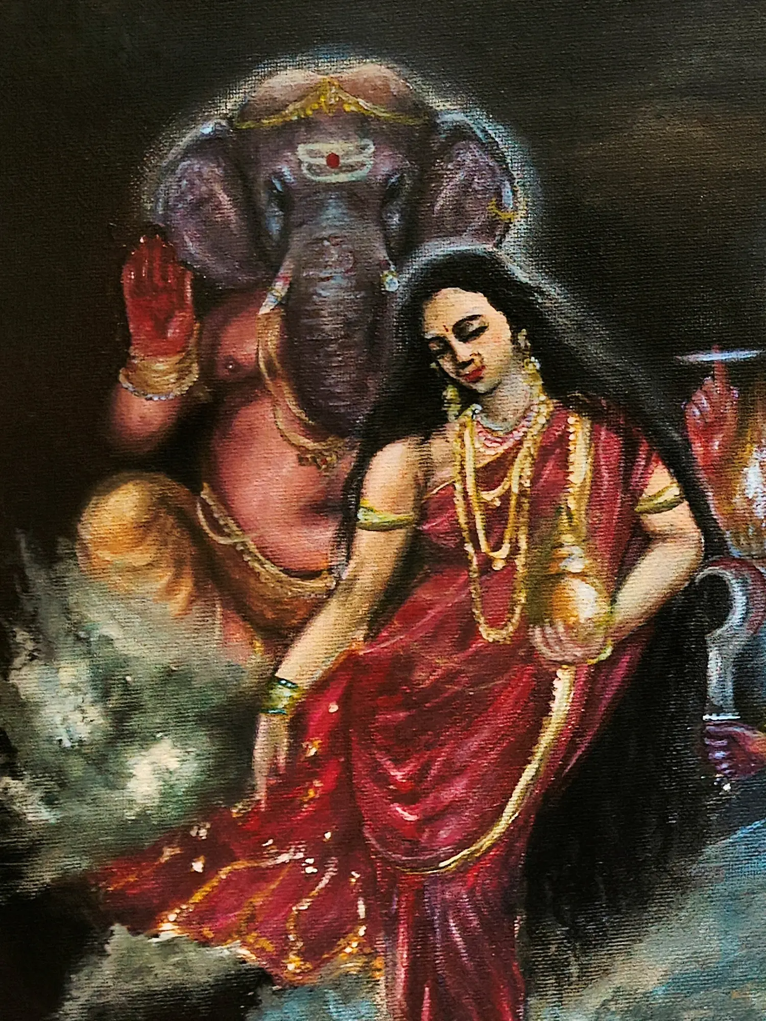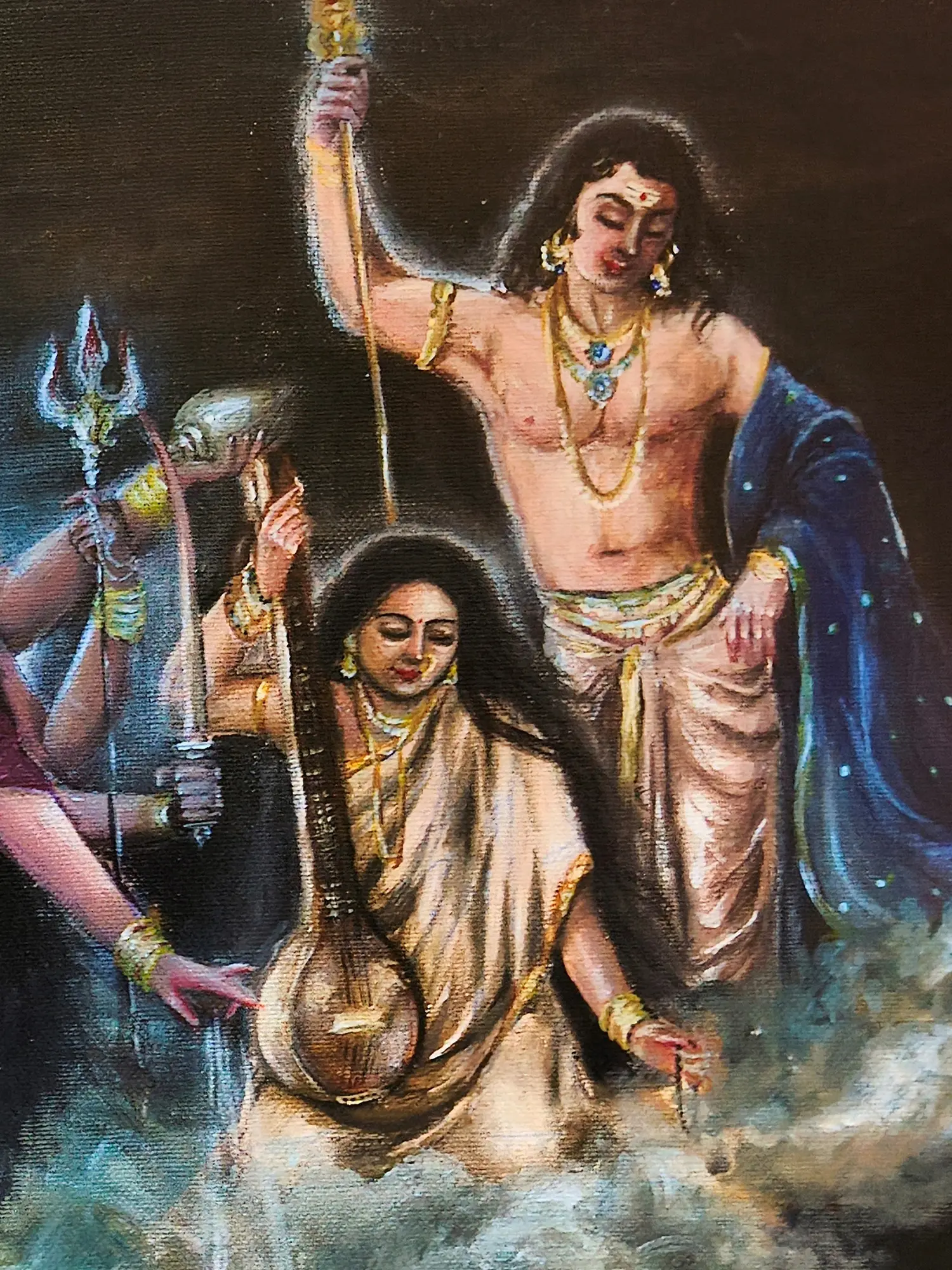 12" Goddess Parvati Worshipping Lord Shiva | Watercolor Painting