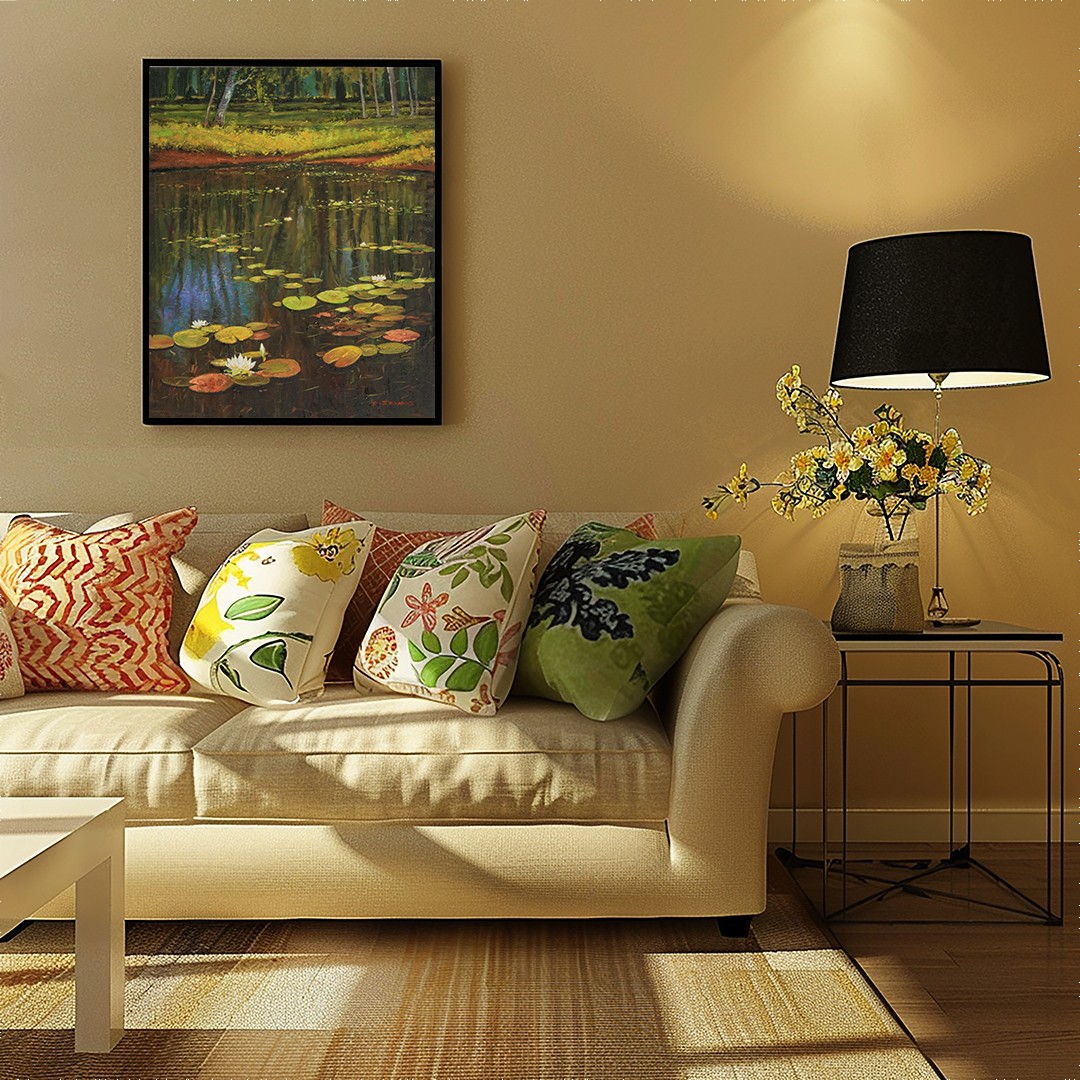 Beautiful Pond Of Lotus | Oil On Canvas | By Devraj