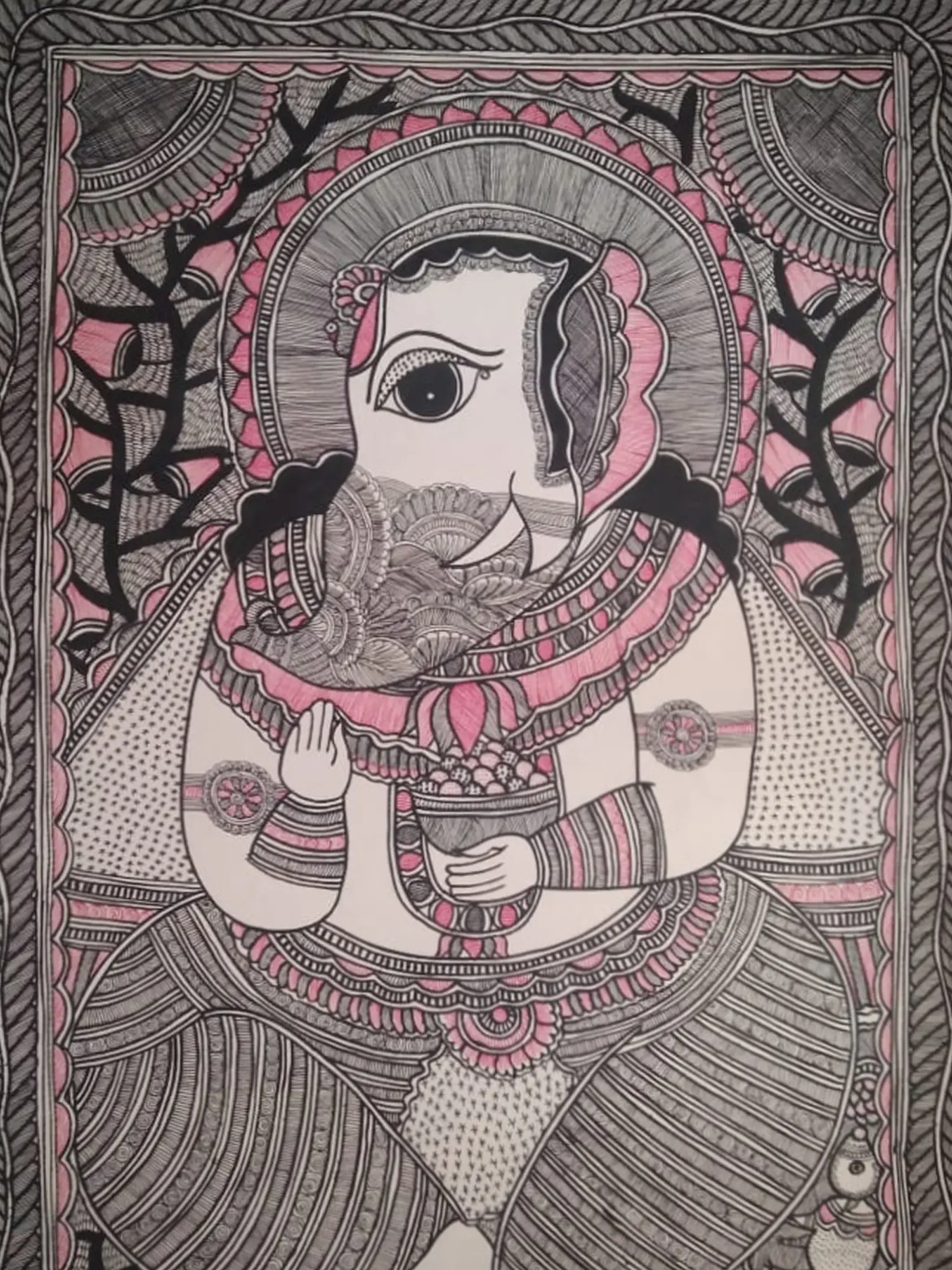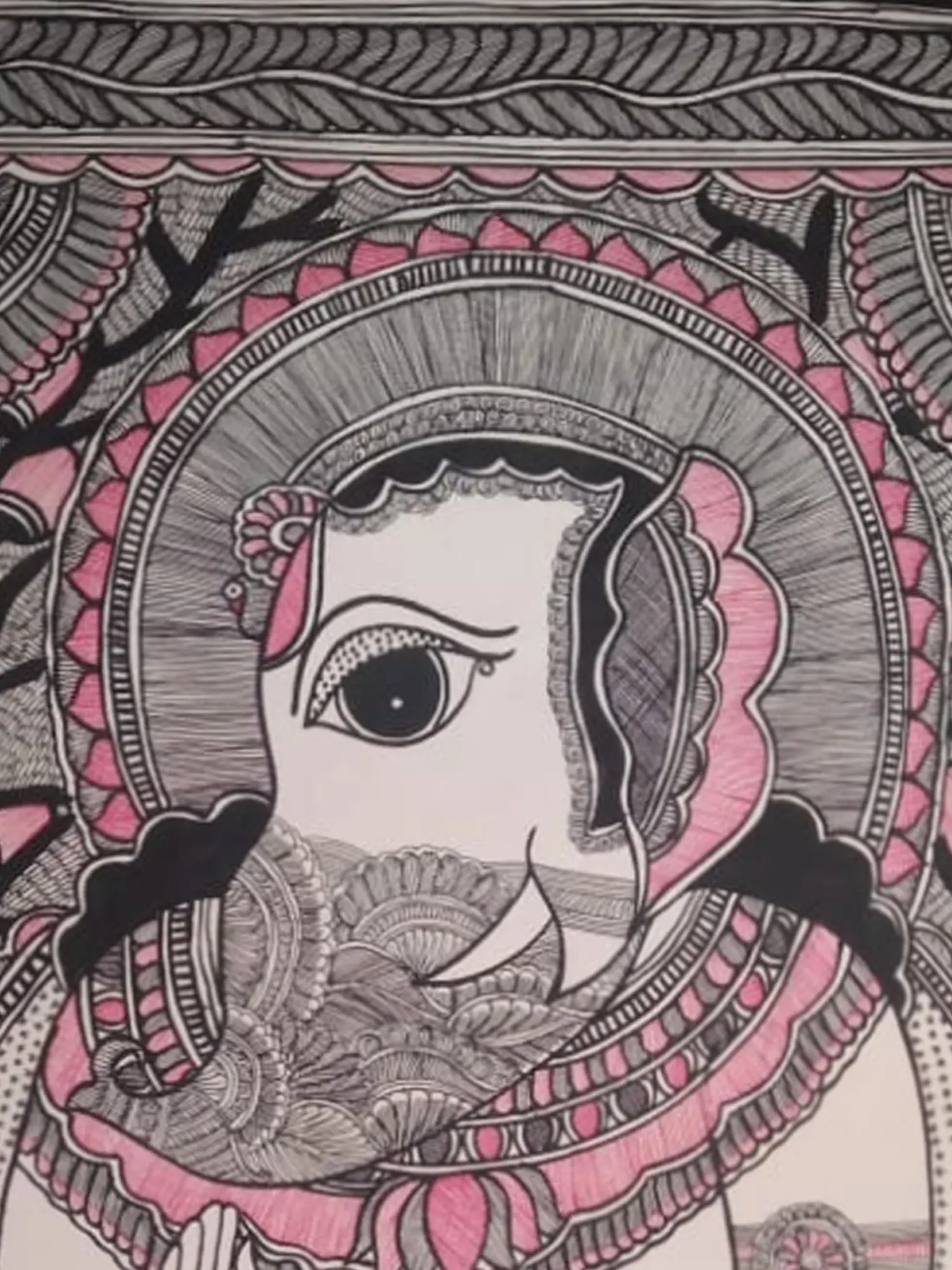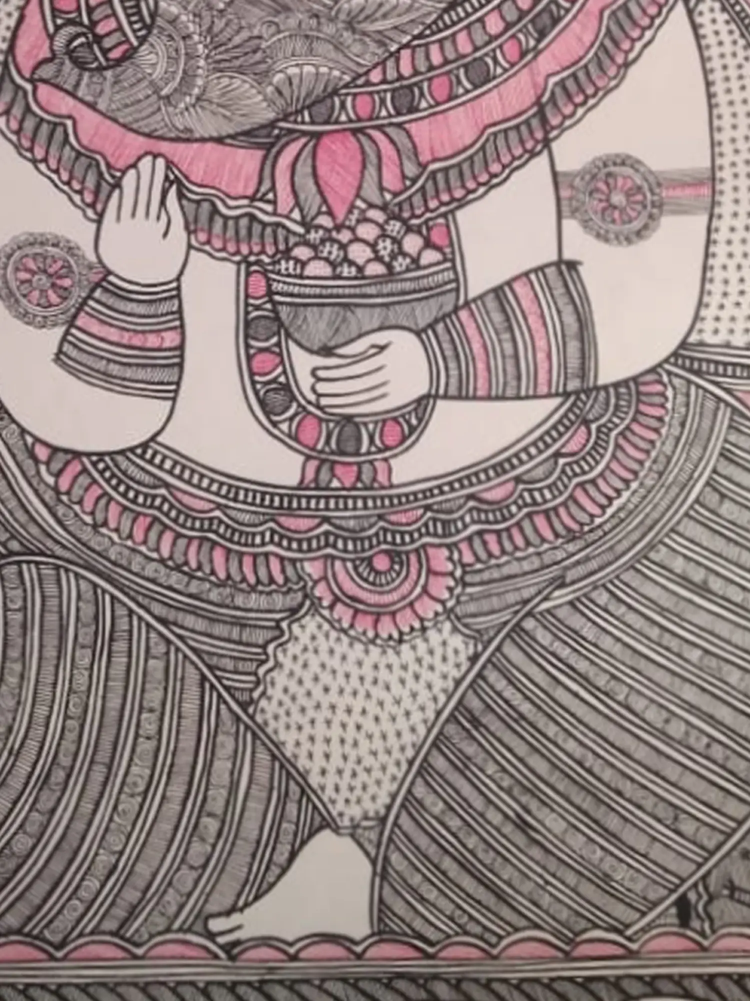 Experience the divine presence of Lord Ganesha in 'Ekdant Ganesha', a sublime piece crafted with natural colours on handmade paper. With a single tusk symbolising wisdom and discernment, Ganesha emerges as a harbinger of auspicious beginnings and divine grace. Each brushstroke reverberates with reverence and devotion, inviting blessings and prosperity into the hearts of devotees.