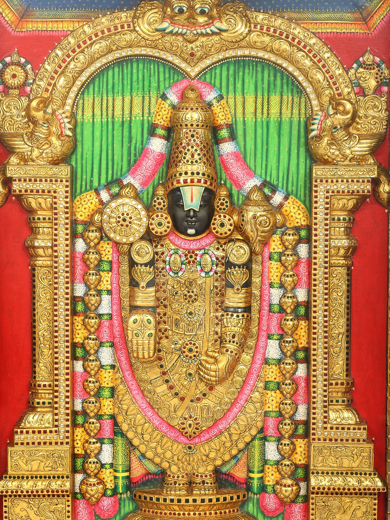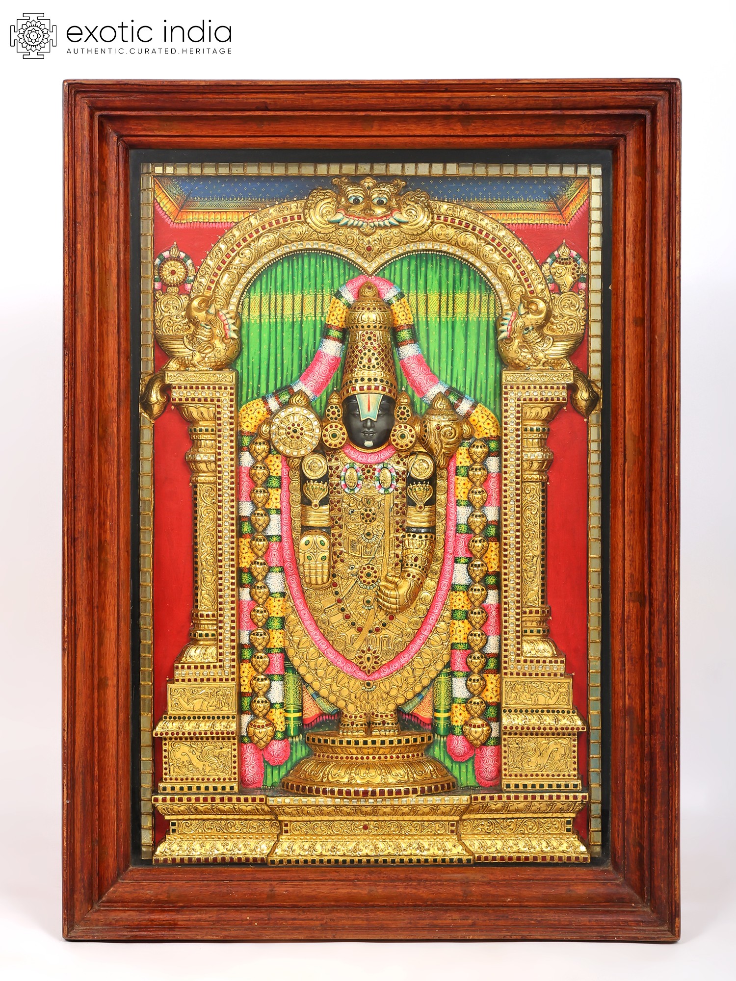 Lord Tirupati Balaji (Venkateshvara) | Framed Tanjore Painting