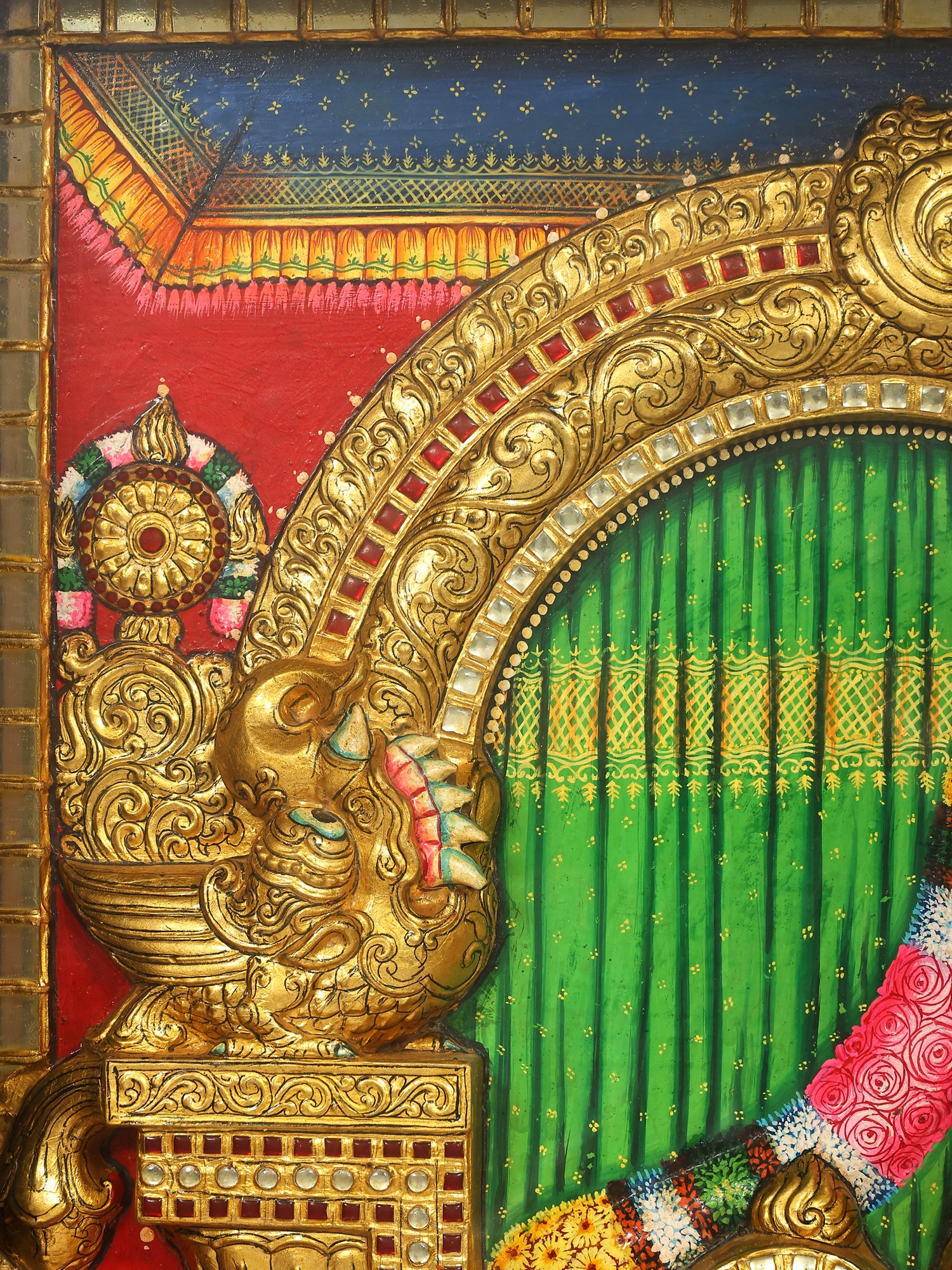 Lord Tirupati Balaji (Venkateshvara) with Goddess Gajalakshmi | Embossed Tanjore Painting