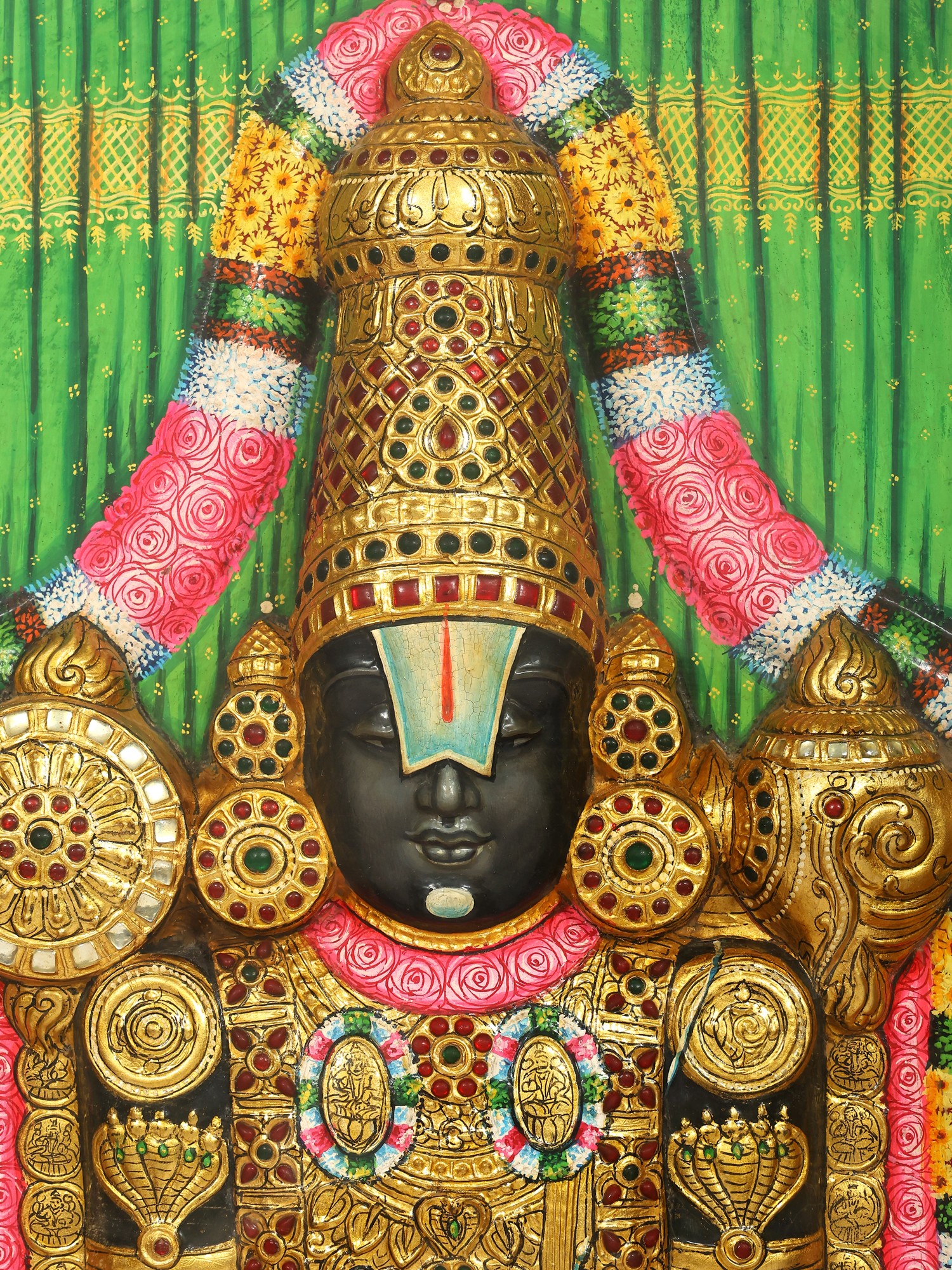 Tirupati Balaji (Venkateshvara) | Tanjore Painting | With Vintage Teakwood Frame
