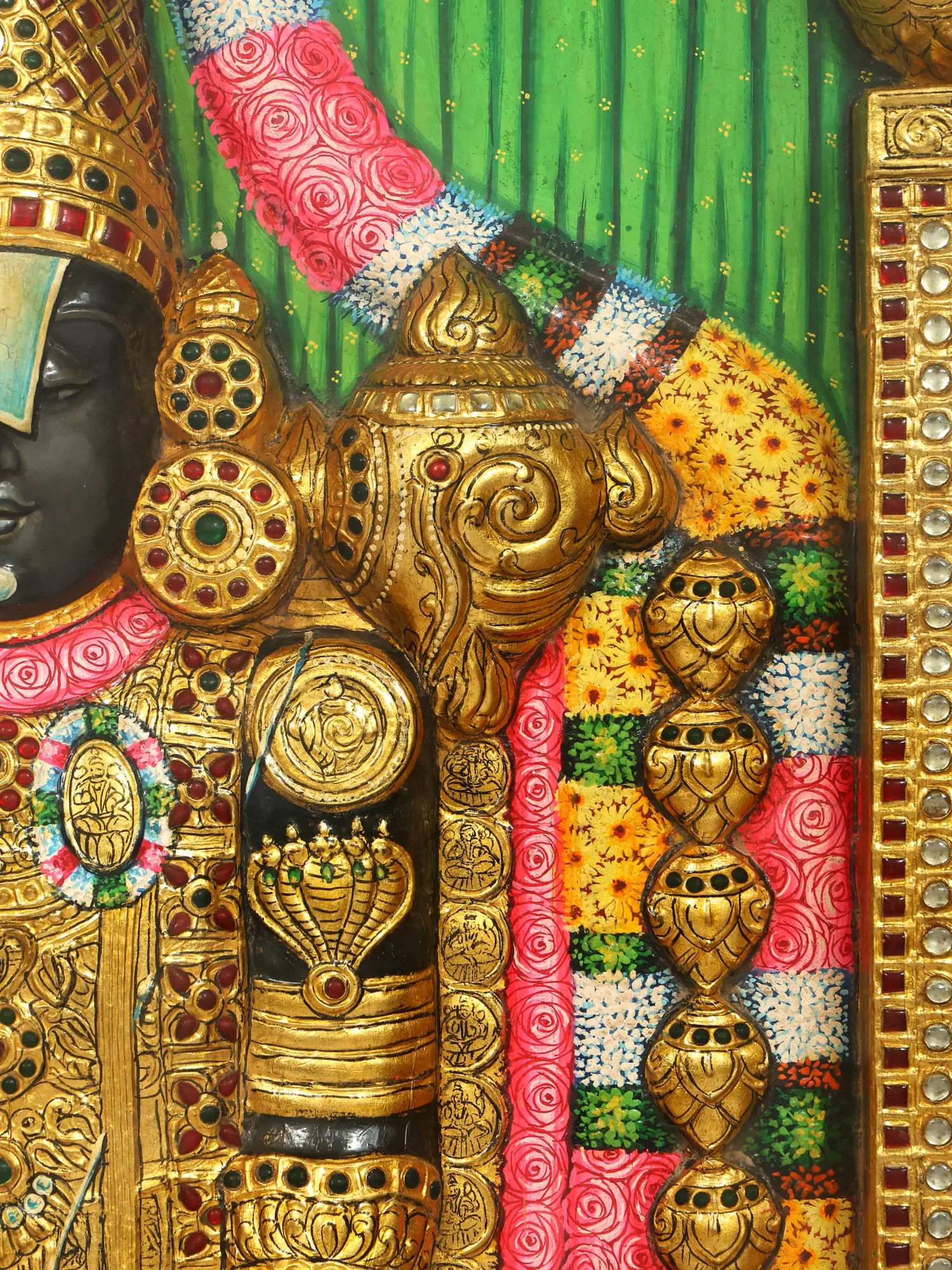 Tirupati Balaji (Venkateshvara) | Super Embossed 3D Face Work | Tanjore Painting With Frame