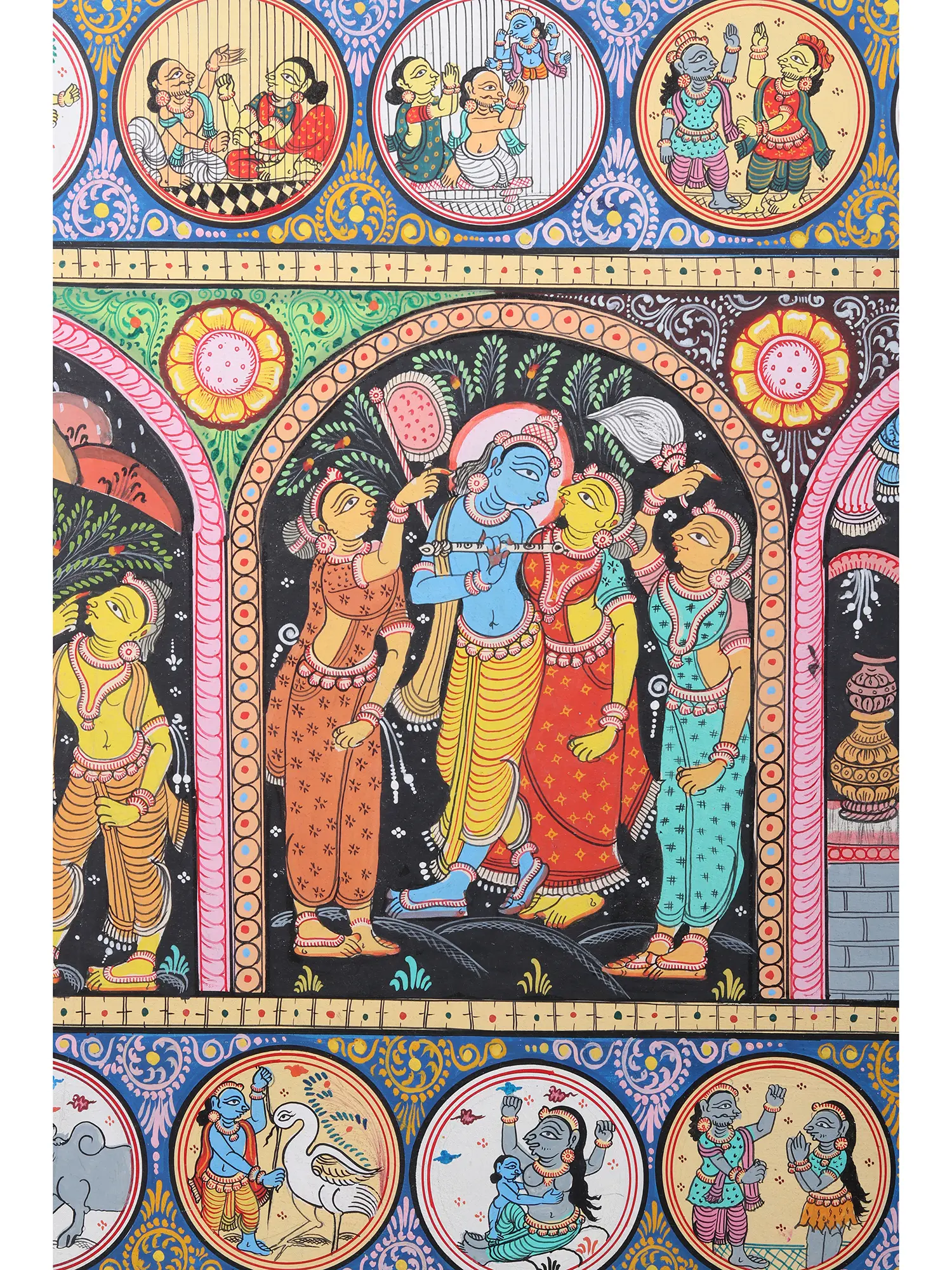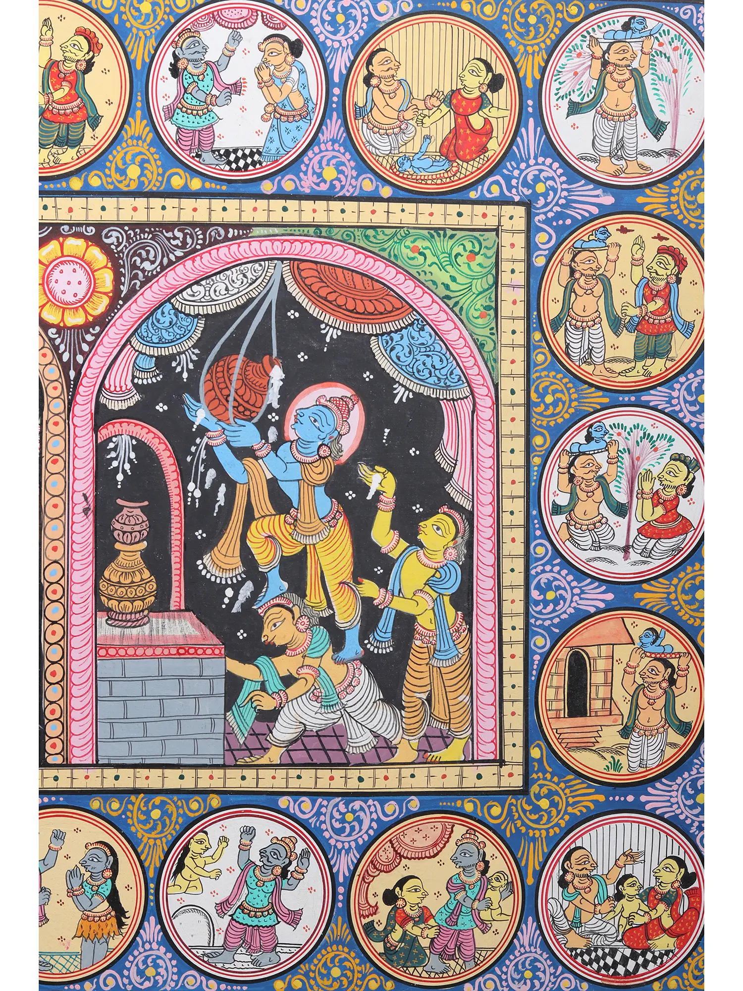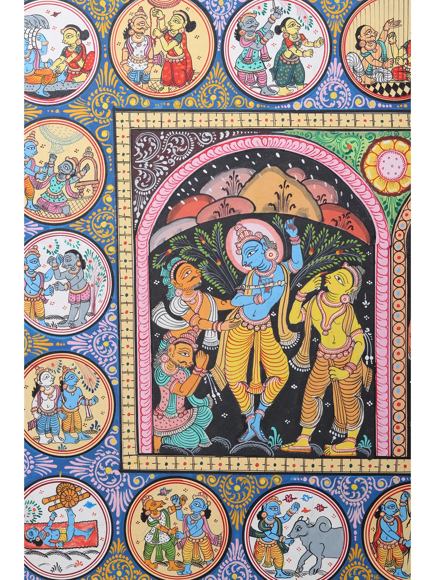 Krishna Story With God And Goddess | Pattachitra Painting | Natural Color On Handmade Canvas | By Sushant Maharana