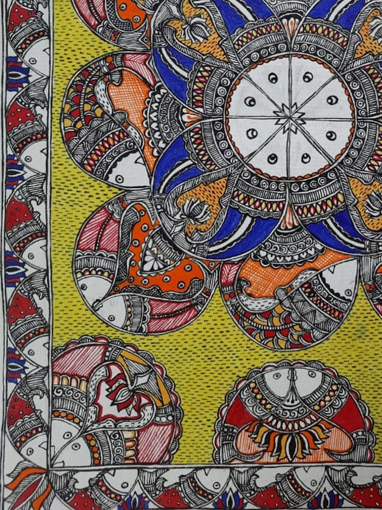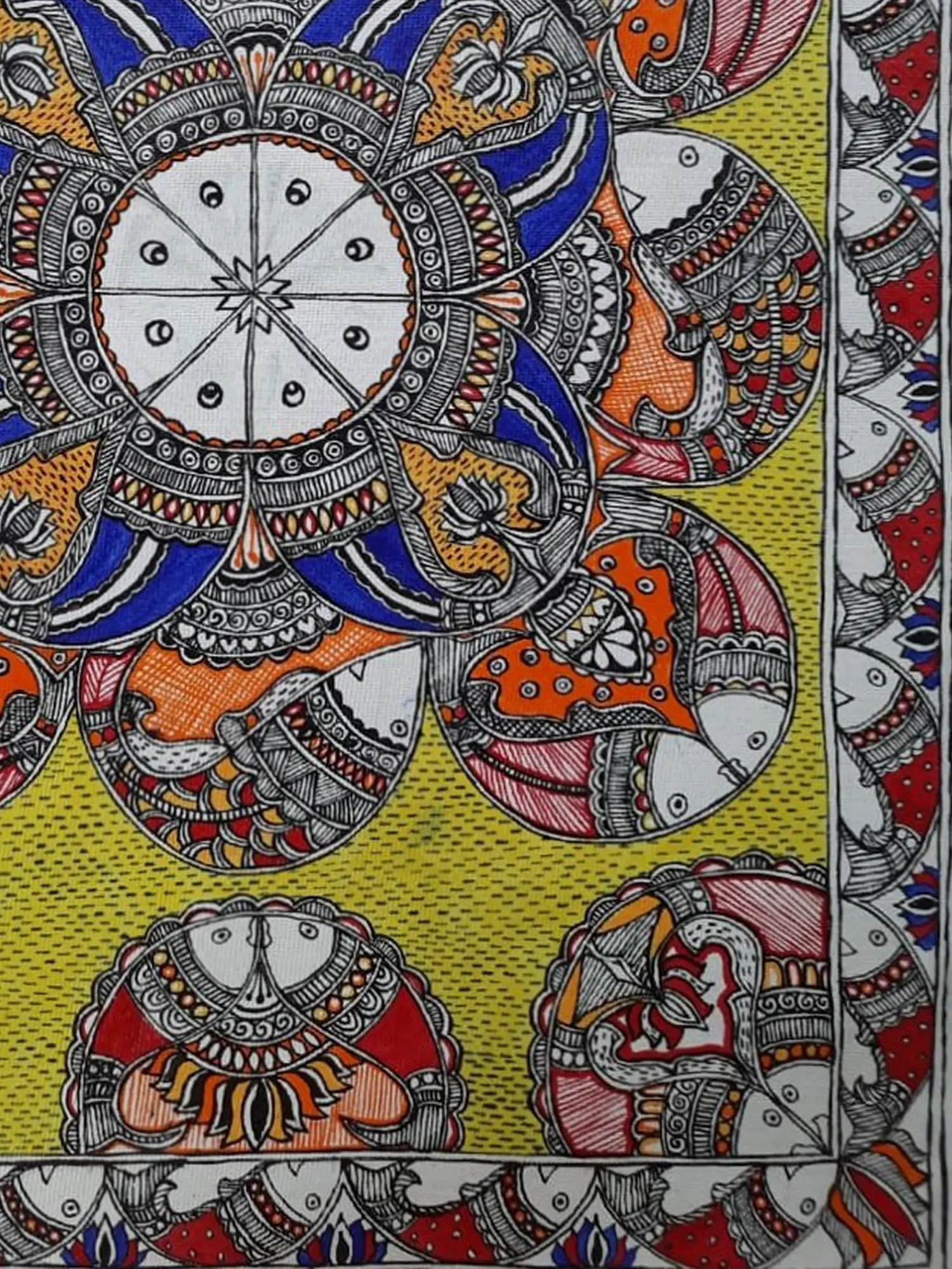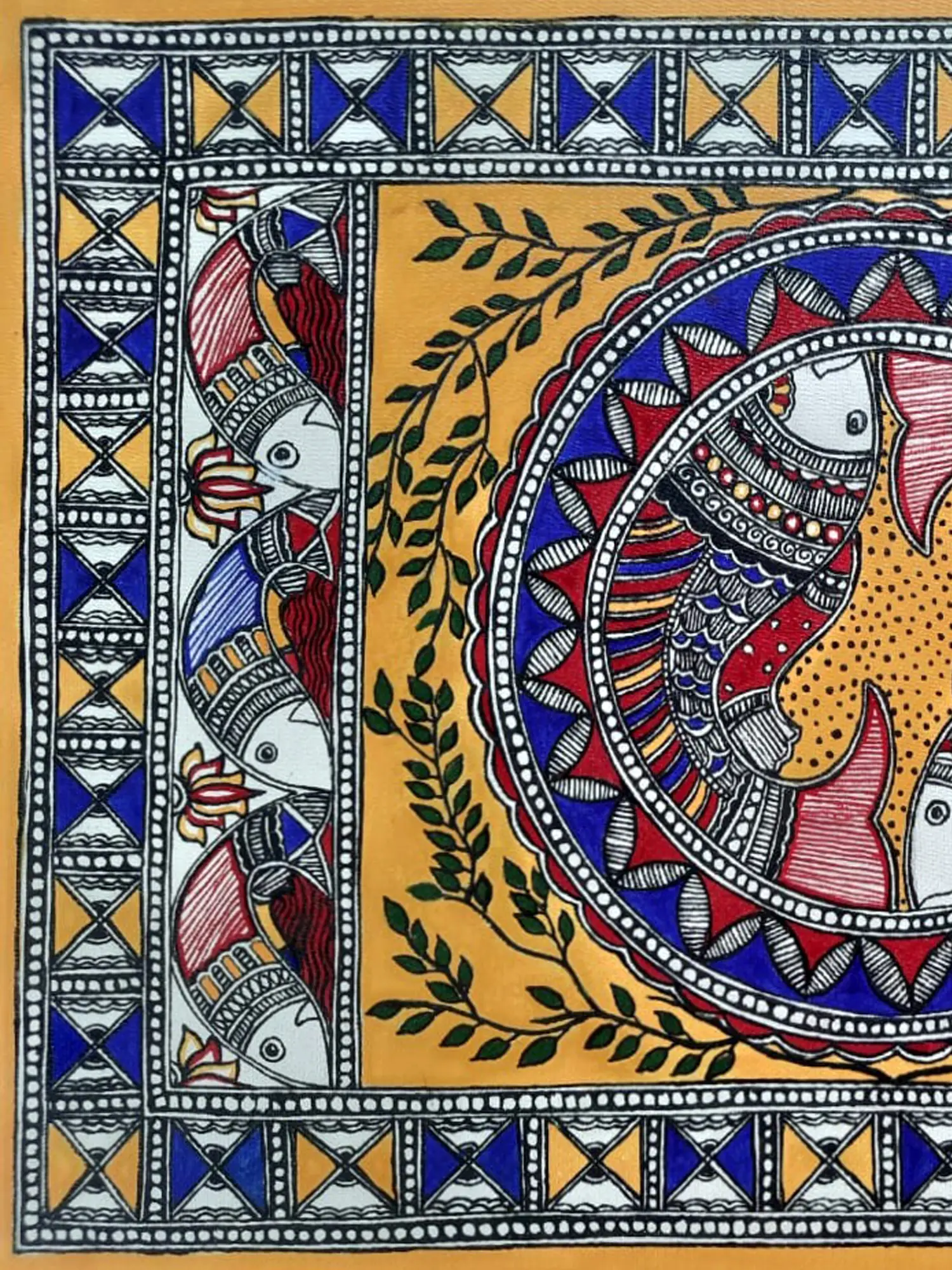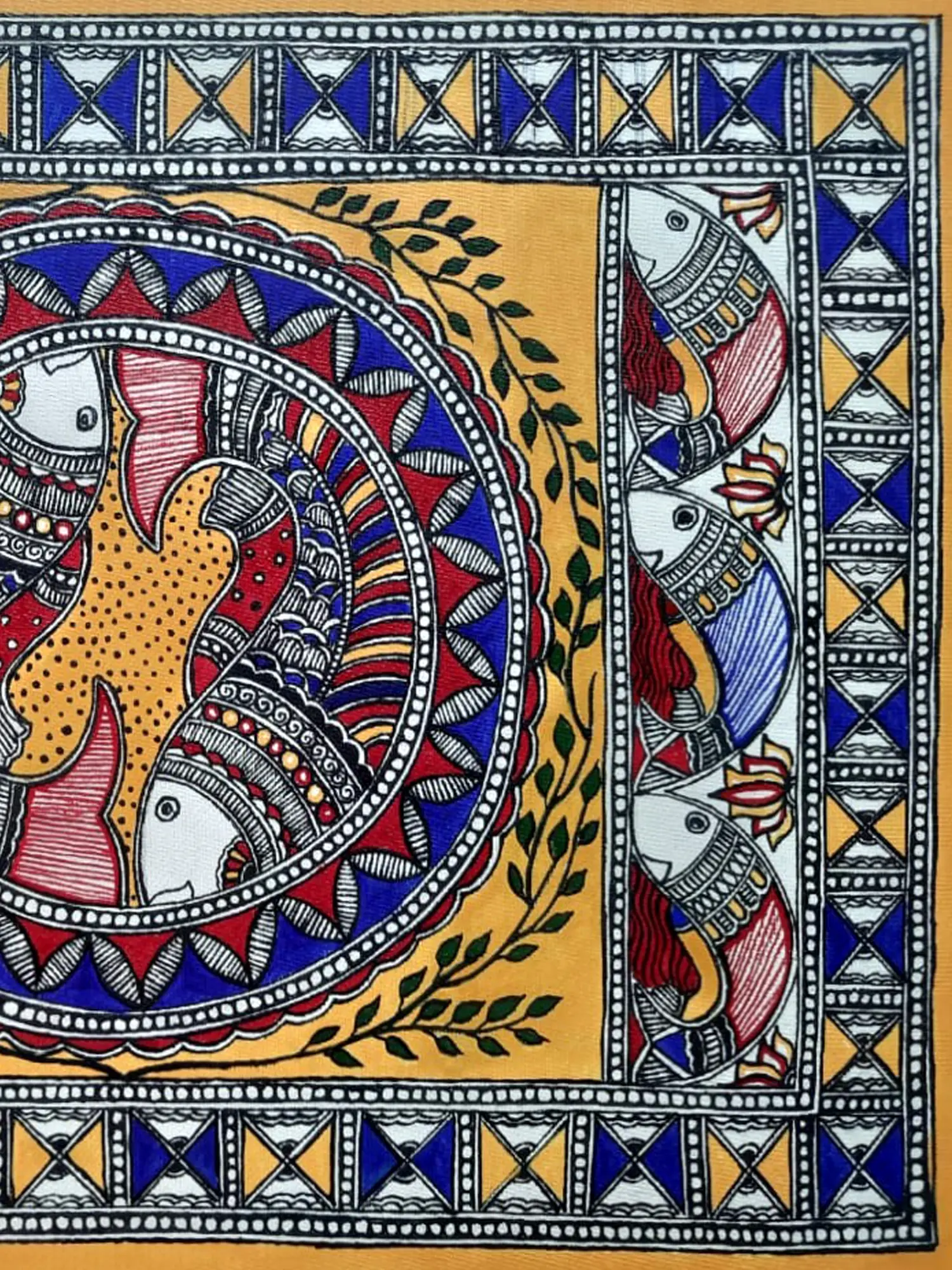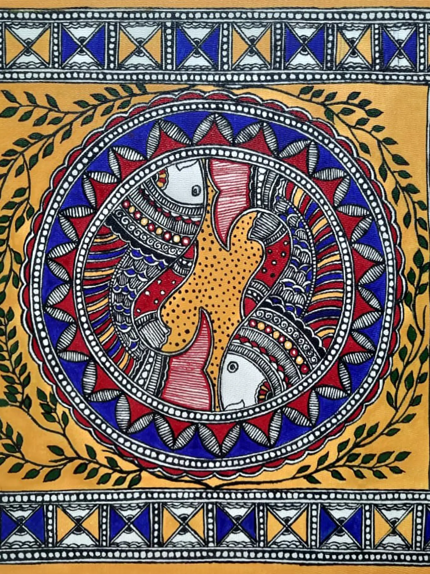 Circle Of Madhubani Fishes | Acrylic On Handmade Canvas Sheet | By Pritanjali