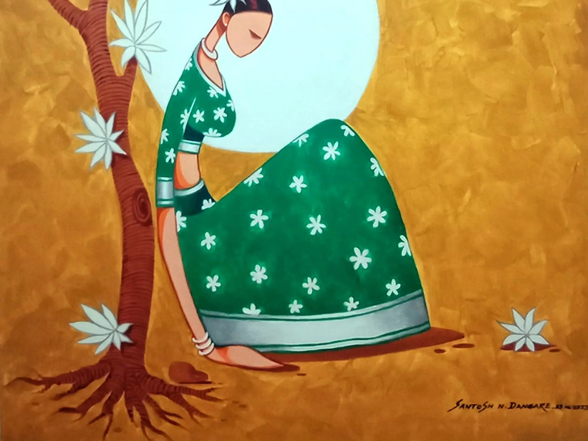 Lady with Flowers Beauty | Acrylic on Canvas | By Santosh Narayan Dangare
