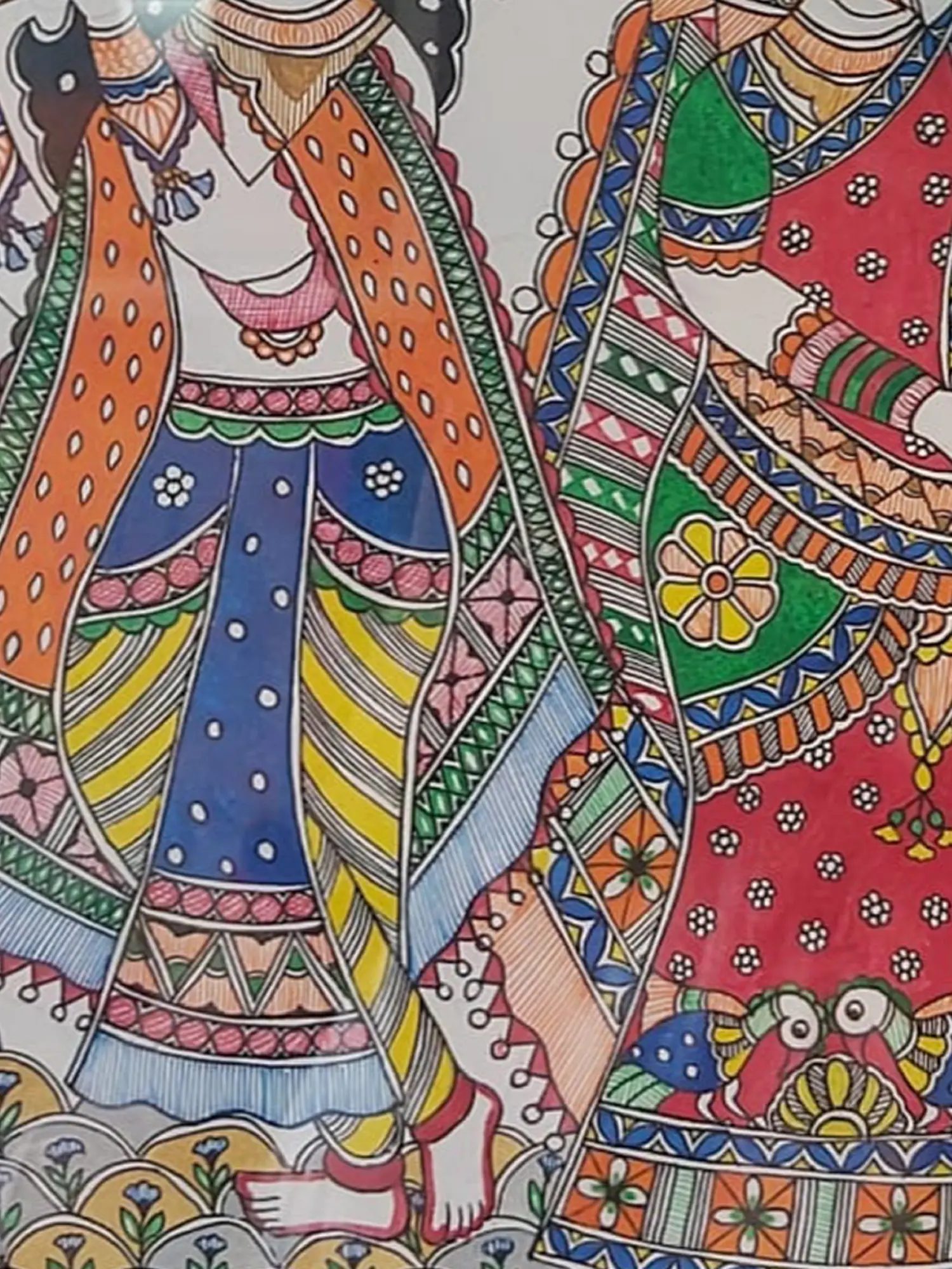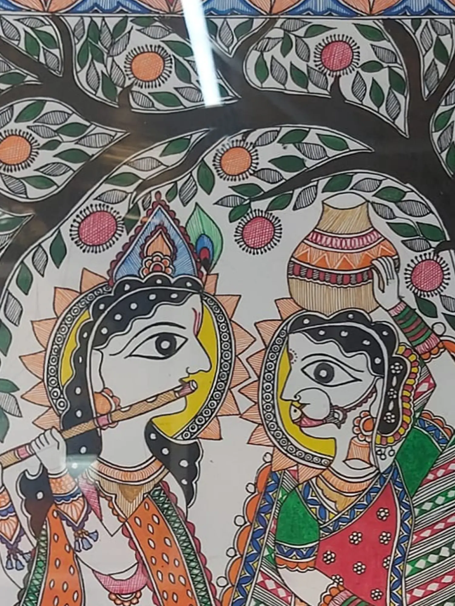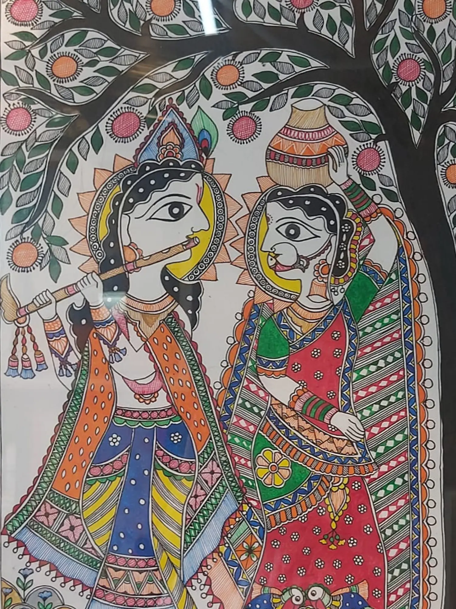 Lord Krishna And Radha | Acrylic On Canvas | Traditional Kerala Mural Art