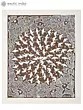 The composition unfolds across the 21-inch height and 17-inch width, drawing the eye into a swirling vortex of white birds against a warm, earthy backdrop. The stark contrast of the white forms against the deep brown creates a striking visual impact, imbuing the scene with a dynamic sense of depth and movement. The surrounding texture, suggestive of cracked earth or a textured sky, adds another layer of visual interest and anchors the energetic flock in its environment.