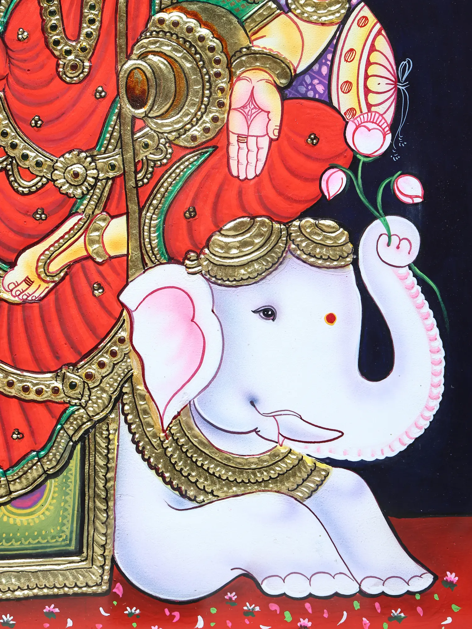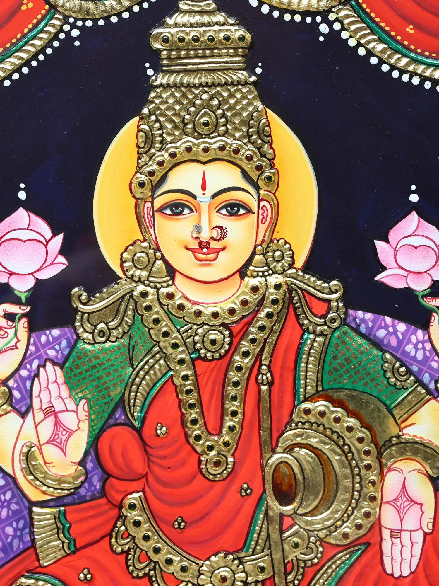 Goddess Gajalakshmi Tanjore Painting | Traditional Colors With 24K Gold | Teakwood Frame