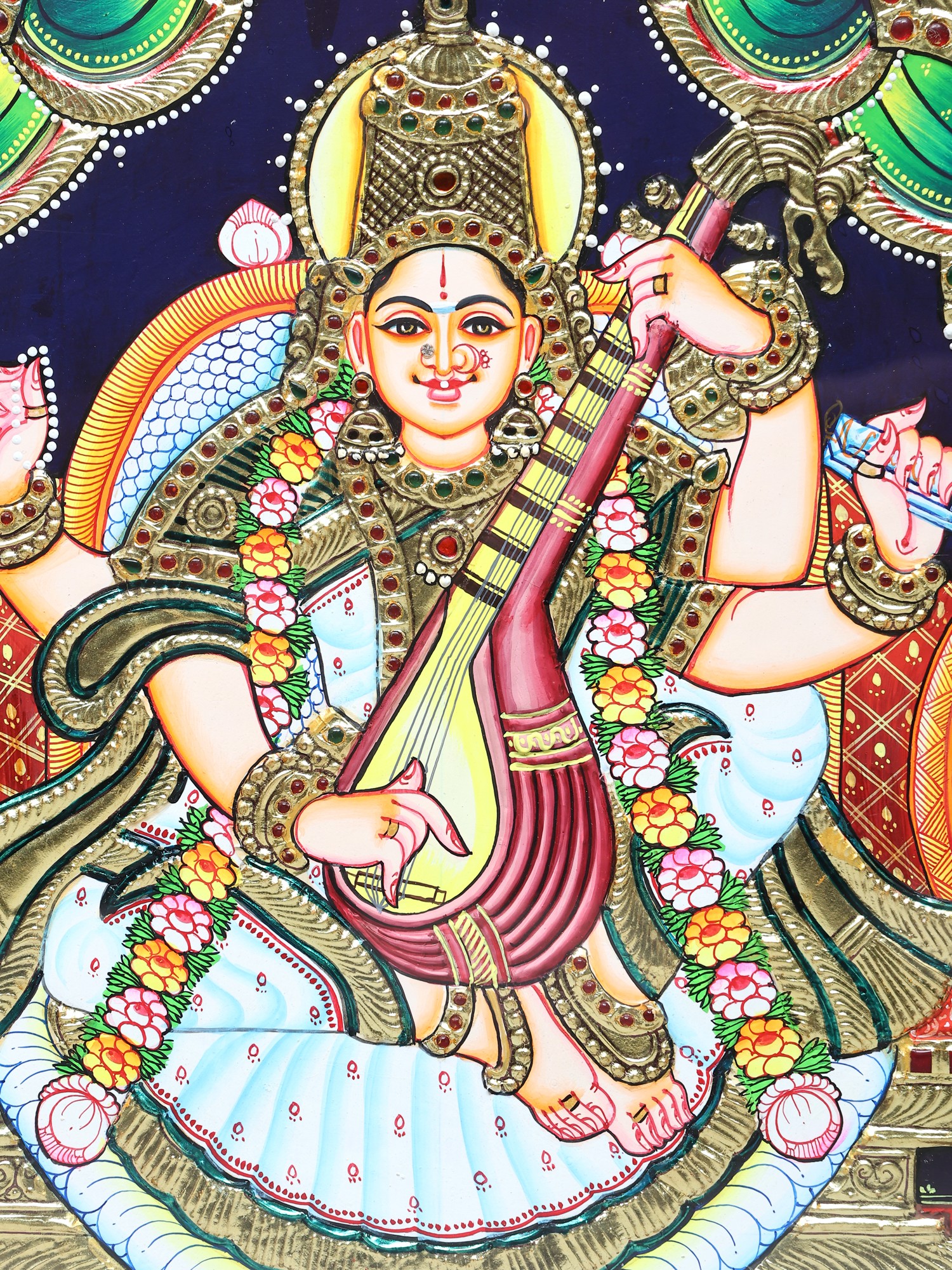 Divine Melody of Wisdom: A Tanjore Masterpiece