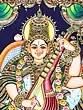 Goddess Saraswati Tanjore Painting Playing Veena | Traditional Colors with Gold Work