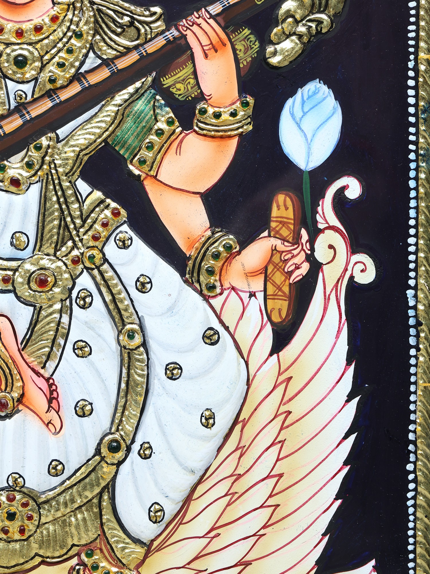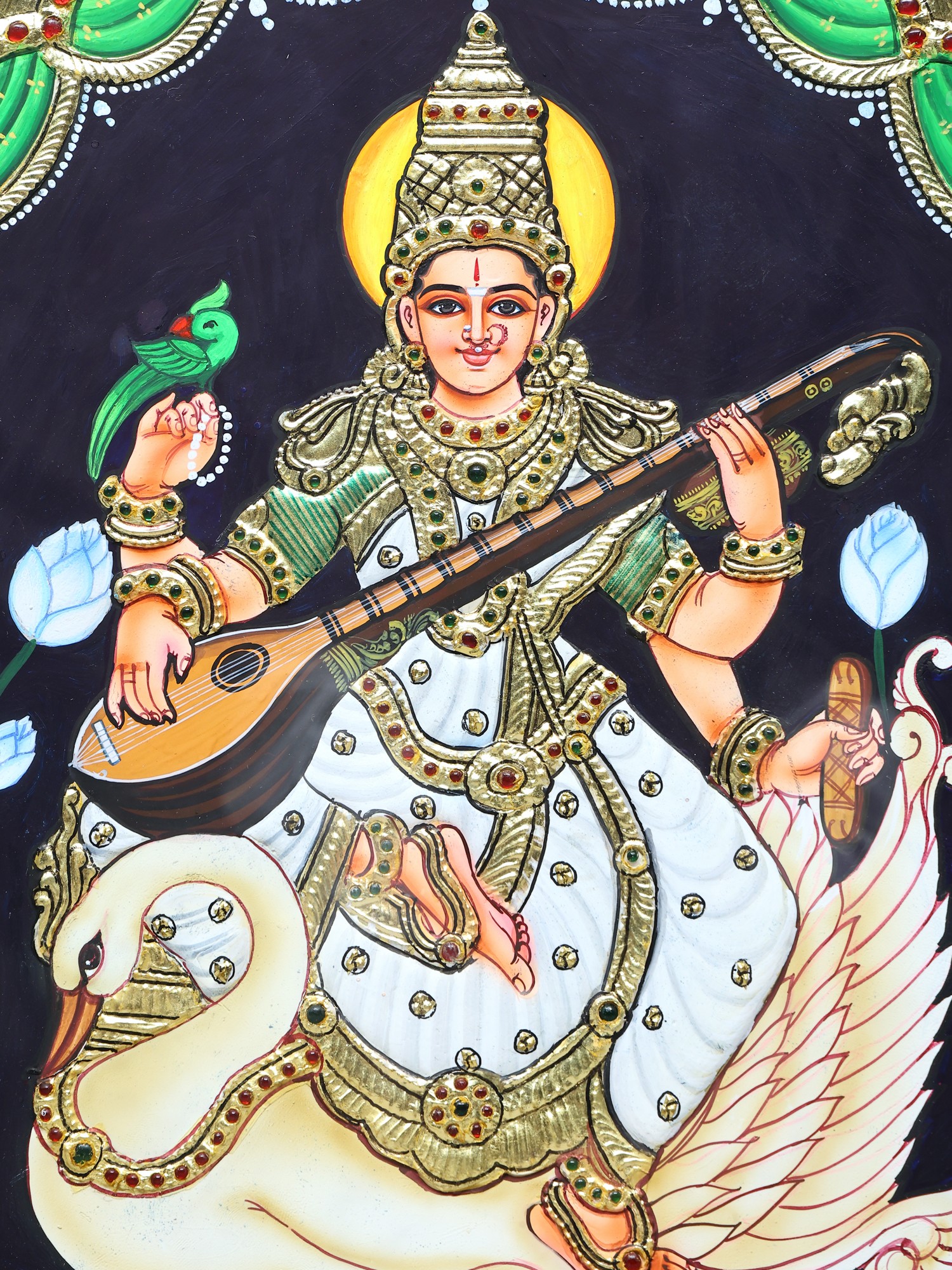 Goddess Saraswati Seated on Swan | Prabhu Tanjore Painting | With Frame