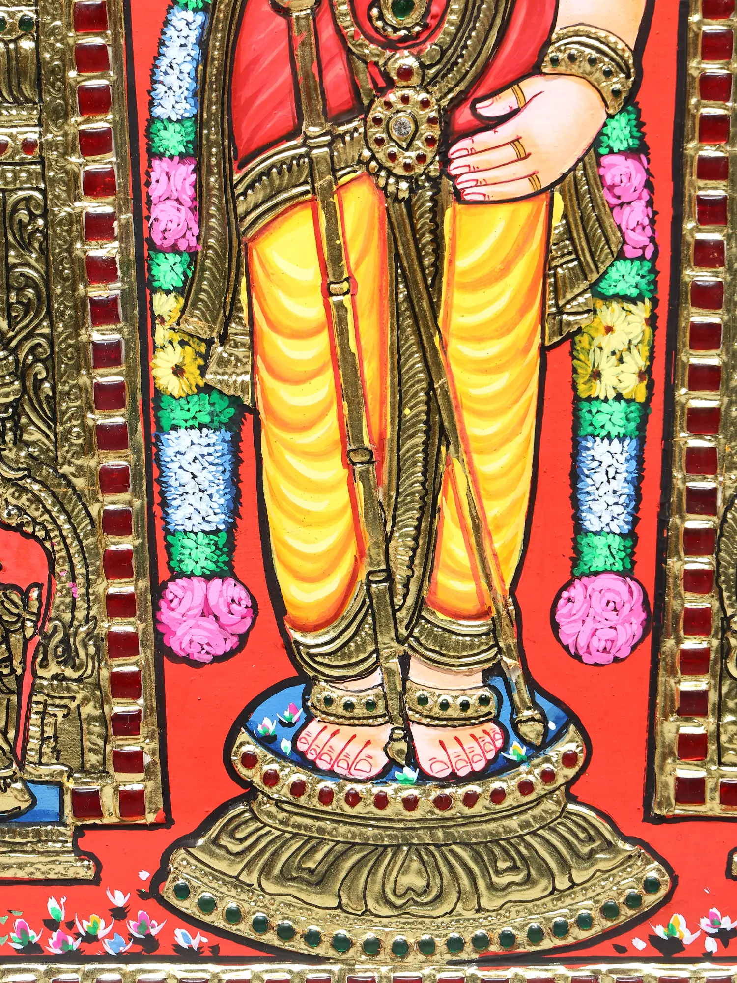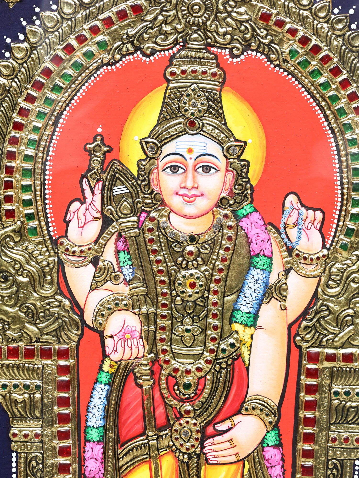 Lord Murugan Standing Inside Arch | Kartikeya Tanjore Painting with Frame | Traditional Colour with 24 Karat Gold