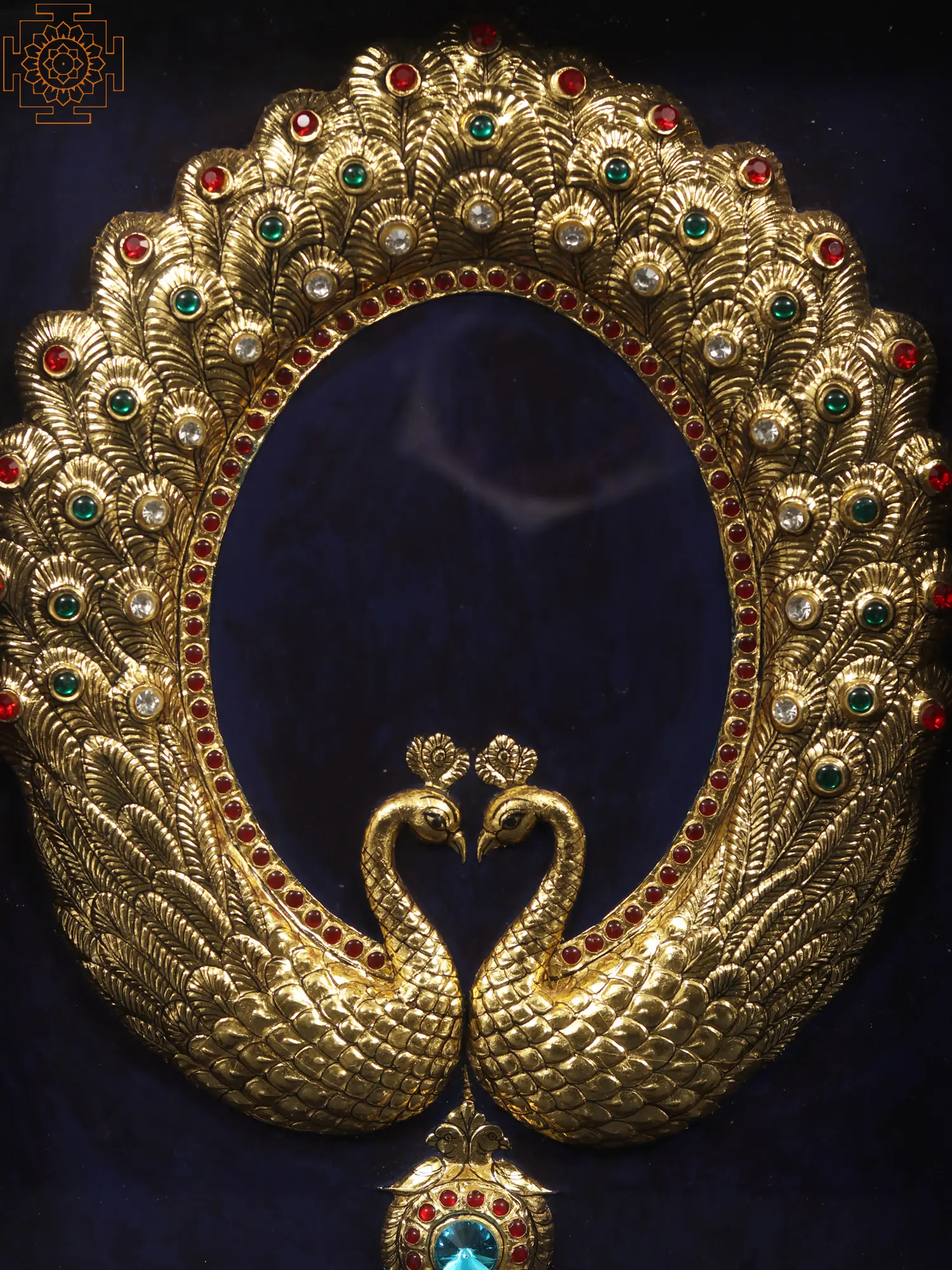 Peacock with Mirror | Tanjore Painting with Frame | Traditional Colour With 24 Karat Gold