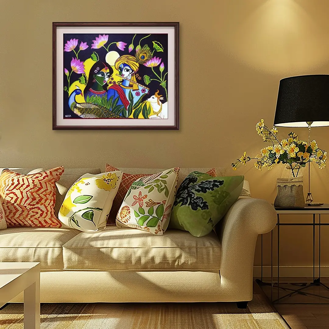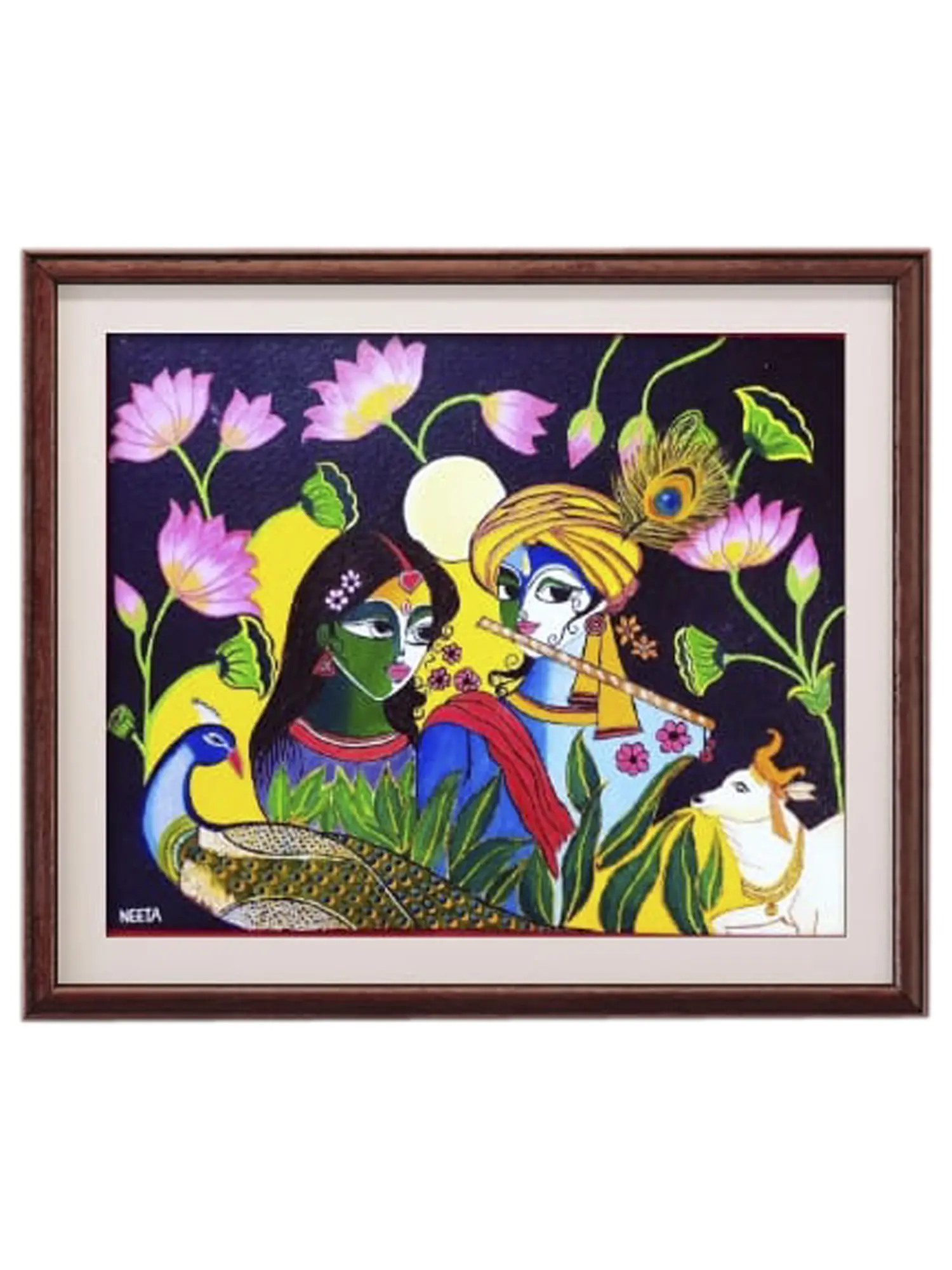 Divine Radha And Krishna | With Frame | Oil On Canvas | By Dharmesh Yadav