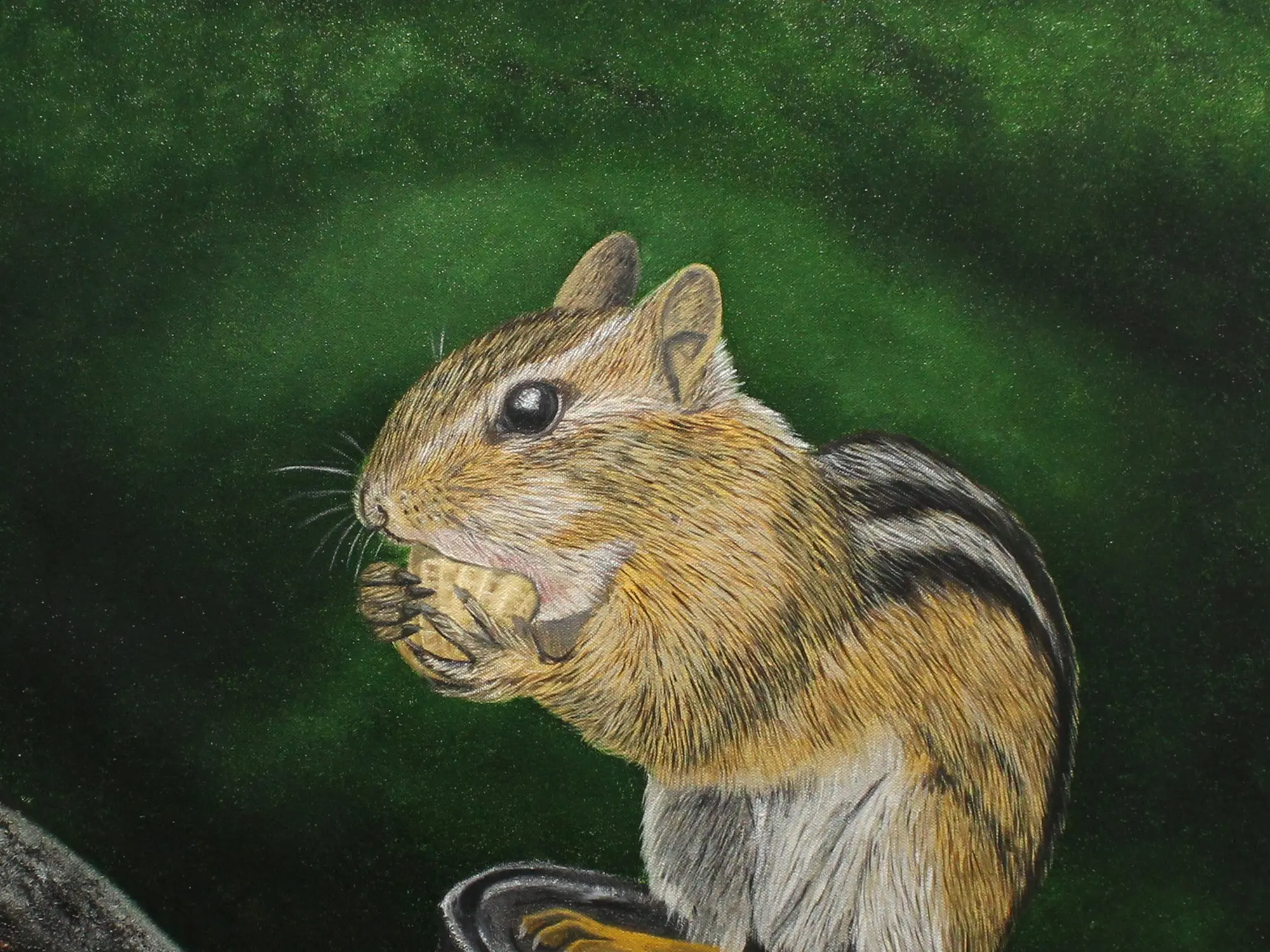 While this depiction captures a modern scene, chipmunks have long been associated with abundance and preparedness in various folk traditions. They often symbolize resourcefulness and the simple joys found in nature's bounty. This artwork evokes that enduring connection to the wild, bringing a touch of timeless natural charm into your space.