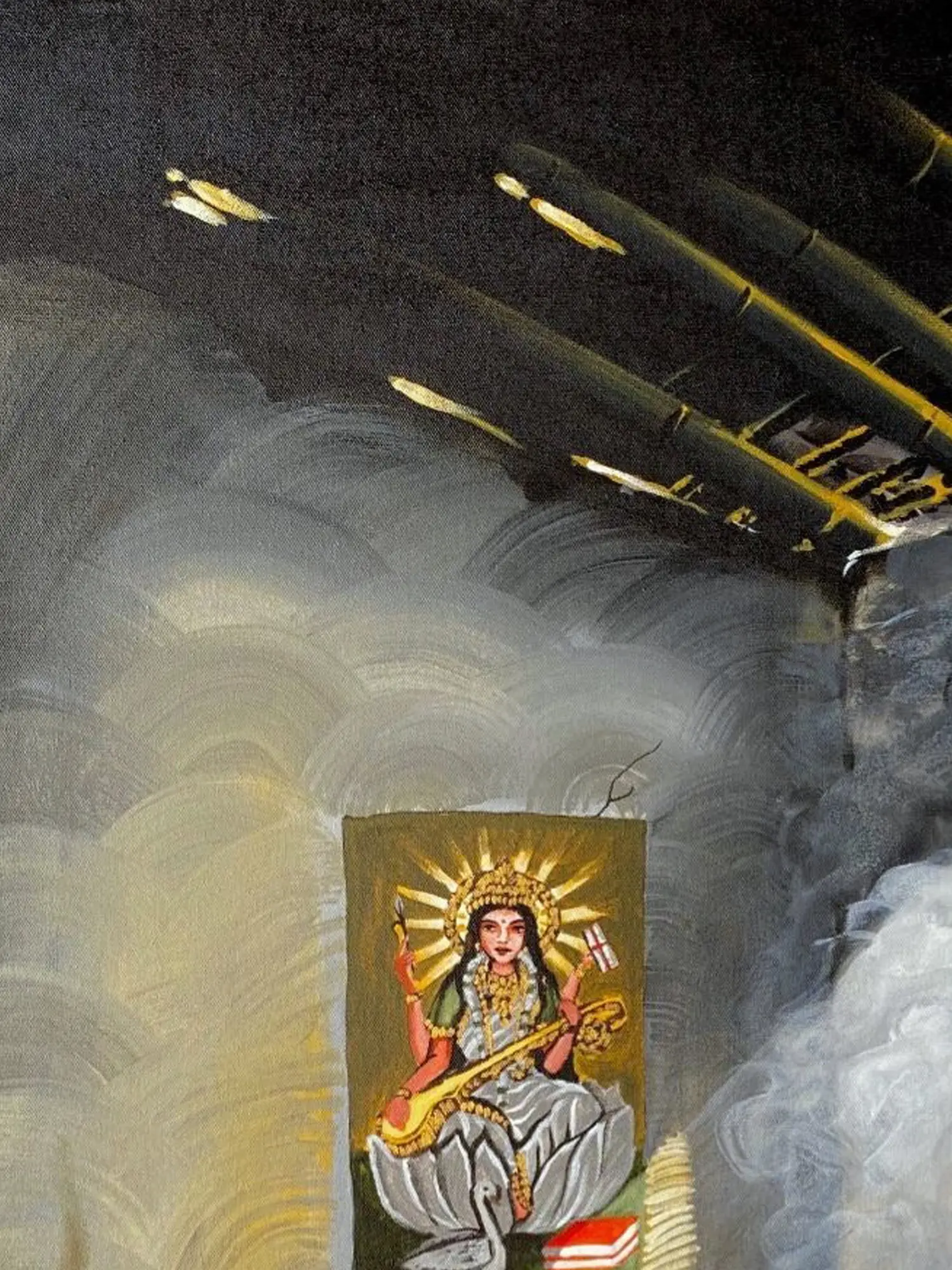 Goddess Saraswati Sitting On Vahana | Acrylic Colors On Canvas | By Kirtiraj Mhatre